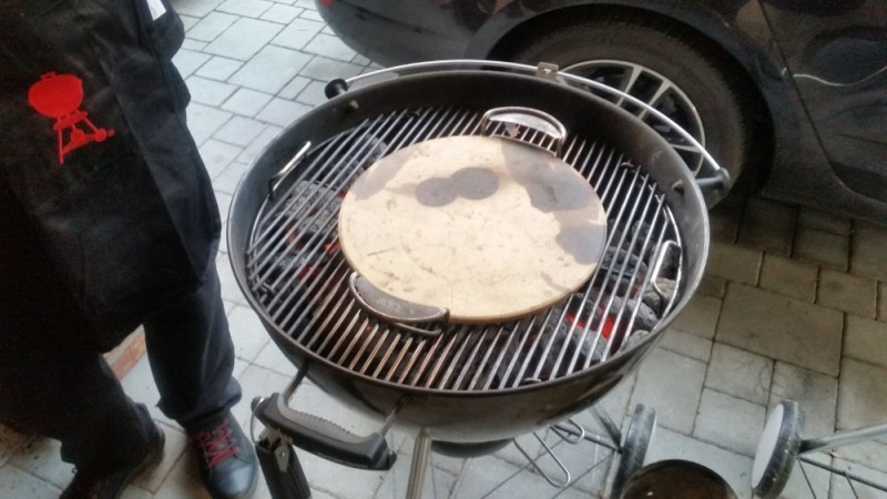 Urobiť pizzu na grile sa môže javiť ako mierne šialený nápad, až kým ju neochutnáte. A je to otázka niekoľkých pár minút, keď viete ako na to. Stačiť Vám bude jednoduchý kotlový gril - v našom prípade to bola kotlová 57-čka na uhlie ( ale použiť je možné aj akýkoľvek ďalší model vyššej rady grilov) a spodný kameň na pizzu. Na rozdiel od liatinového roštu sa táto keramika prehrieva inak, a pizza sa bude piecť rovnomerne. Na liatine sa Vám ju totiž asi podarí pripáliť :) No, a potom už stačí len 10-15 minút, teplota okolo 200 stupňov a je hotovo.
