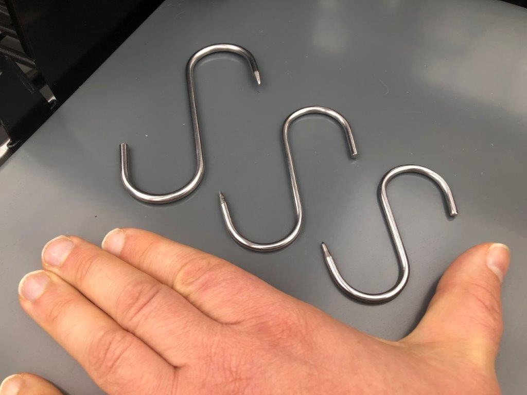 Tieto háky bežne používame do udiarní radu Bradley Smoker, Borniak a drevených udiarní Master Smoker. Svoju nosnotsiu bezpečne stačí aj na veľké kusy mäsa, priemer použitého nerezového drôtu je u všetkých troch veľkostí rovnaký. V ponuke náradia na údenie máme ale aj ďalšie háky do udiarne - pozrite prosím na ne, hoci Vám niektorý z nihc bude vyhovať viac.