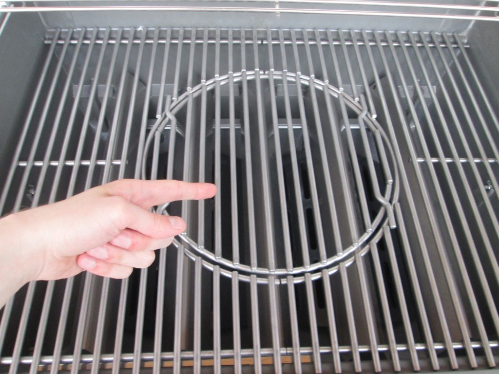 GBS rošt, ktorého stred možno nahradiť napríklad liatinovým hrncom, mriežkou Sear Grate alebo stojanom na kurča.