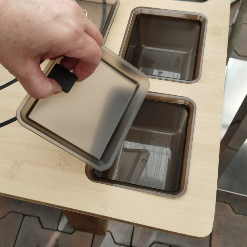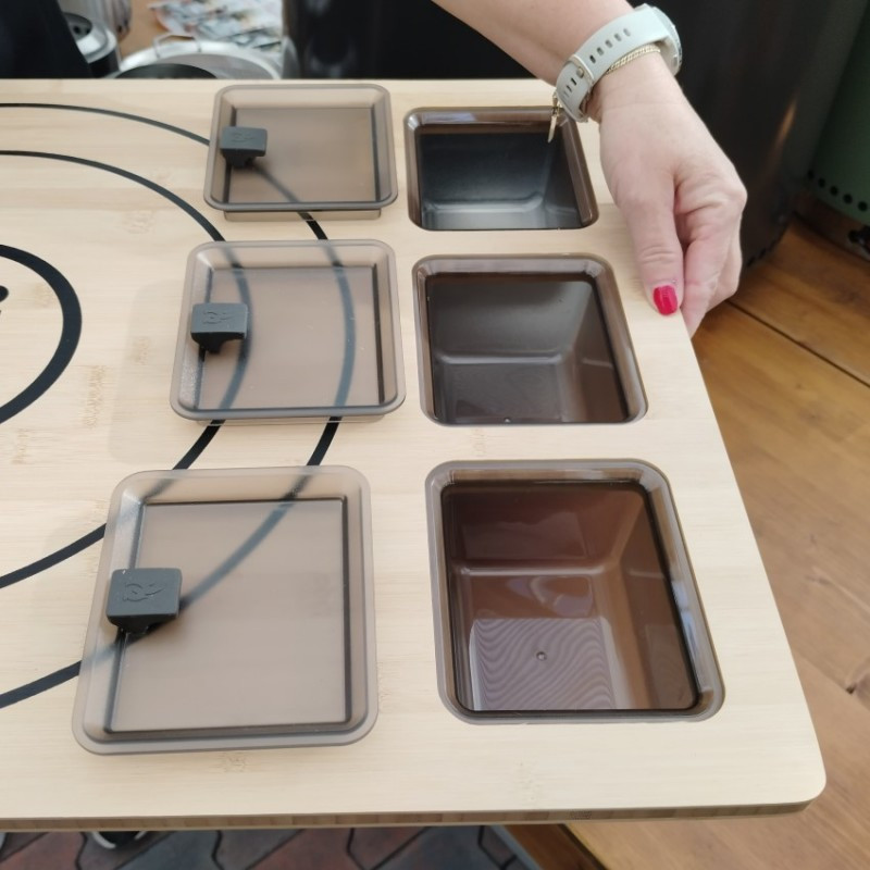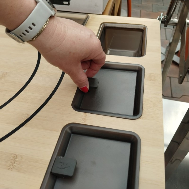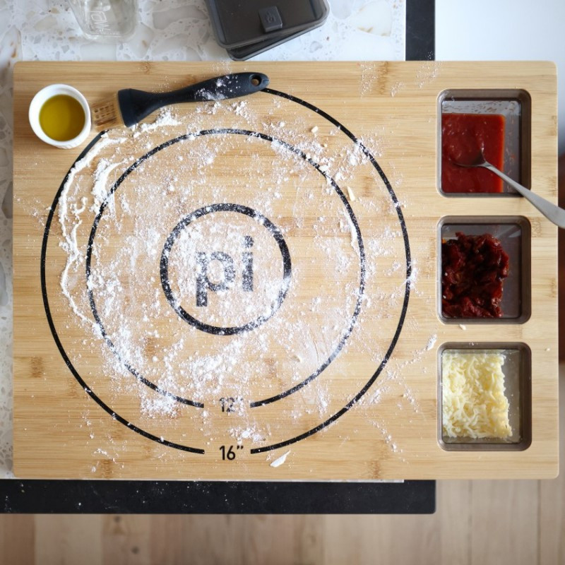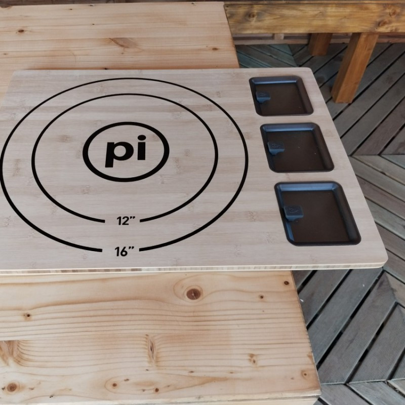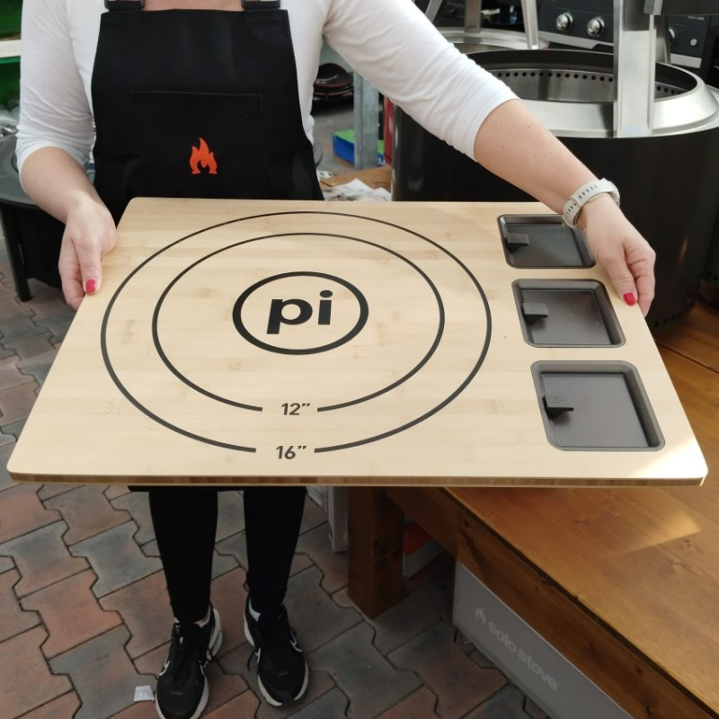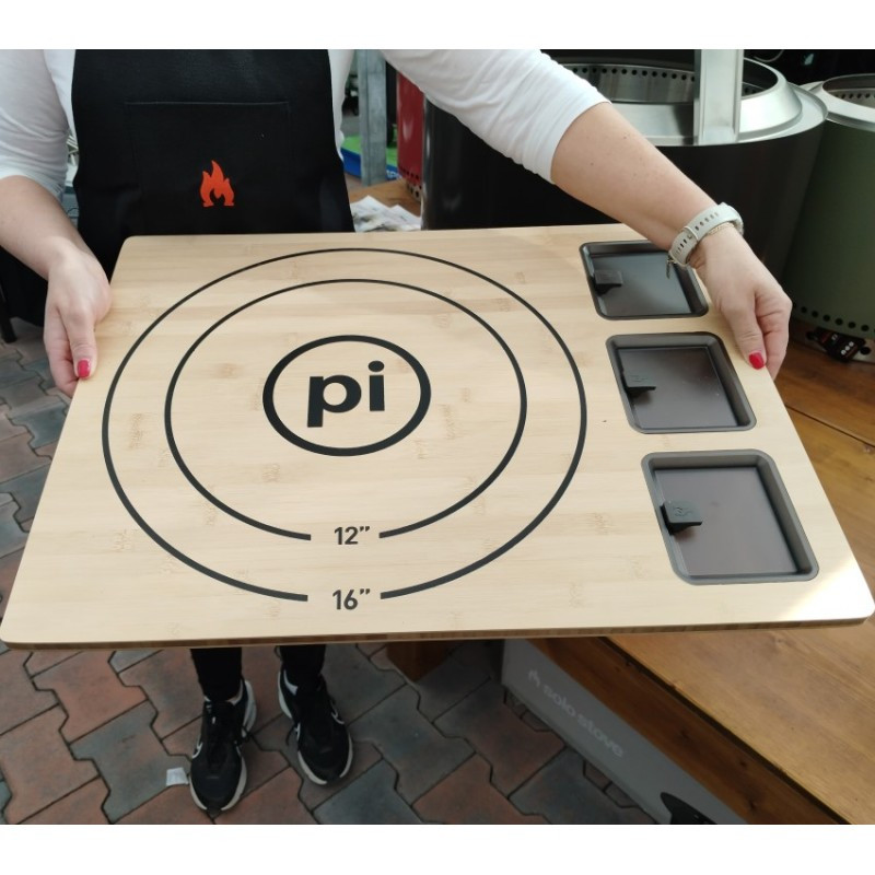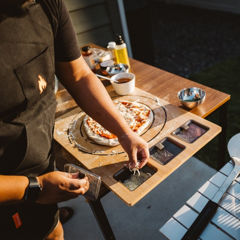 Bambusová podložka Solo Stove na prípravu pizze s tromi boxmi na Vaše obľúbené ingrediencie.