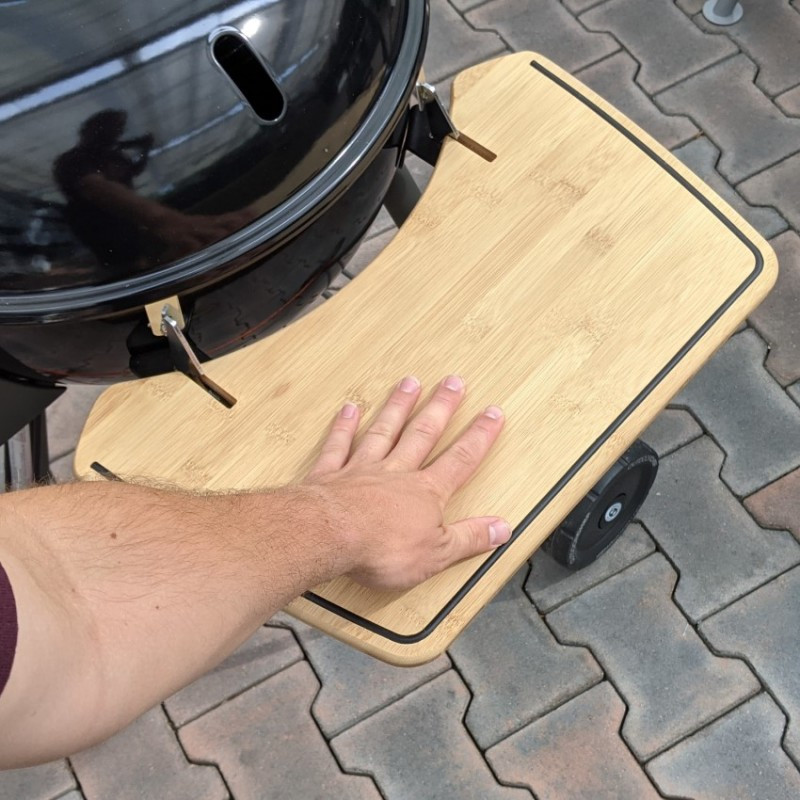 Umožní vám mať všetko potrebné vždy po ruke – ingrediencie, pomôcky alebo servírovacie taniere. Je vyrobený z odolného bambusu, ktorý je nenáročný na údržbu a zároveň pôsobí prírodne a moderne. Vďaka inteligentnému riešeniu ho po použití jednoducho zasuniete do podvozku grilu. Je ľahký, stabilný a špeciálne navrhnutý pre grily Outdoorchef 48 cm. Ak hľadáte funkčný doplnok bez zbytočného zaberania miesta, tento stolík je ideálnou voľbou.