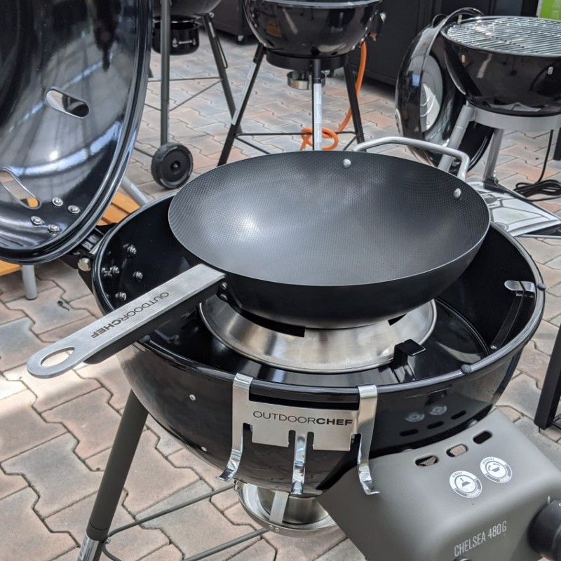 Barbecue Wok panvica Outdoorchef je určená pre plynové grily Outdoorchef s priemerom kotla 42 cm, 48 cm a 57 cm a hranaté grily Outdoorchef Australia a Outdoorchef Dualchef a je vyrobená z uhlíkovej ocele.