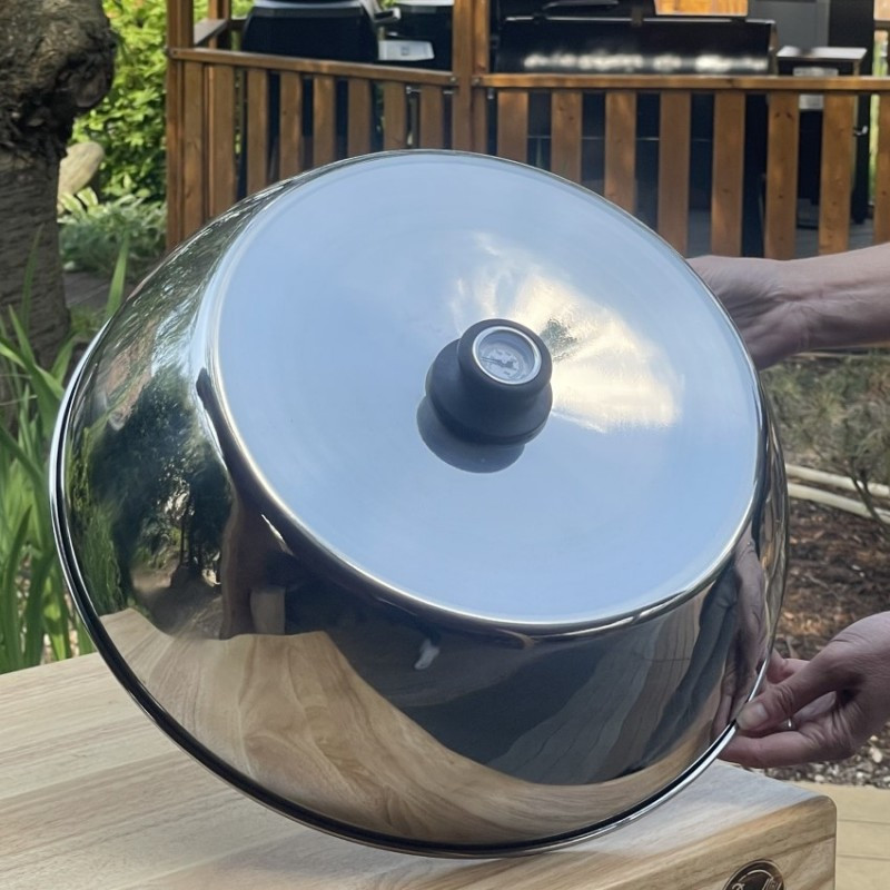 Umožní vám grilovať rovnomerne a pomaly, čo vedie k šťavnatejším a chutnejším výsledkom. Vstavaný teplomer zabezpečí prehľad o teplote bez nutnosti otvárania grilu. Poklop je skladný, praktický a odolný, s možnosťou umývania v umývačke riadu. Je ideálny pre každého, kto chce zo svojho LotusGrillu vyťažiť maximum.