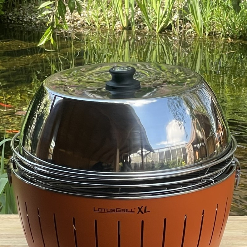 Poklop pre LotusGrill XL z nerezu s teplomerom, ideálny na pomalé grilovanie, skladný, odnímateľná rukoväť, vhodný do umývačky.