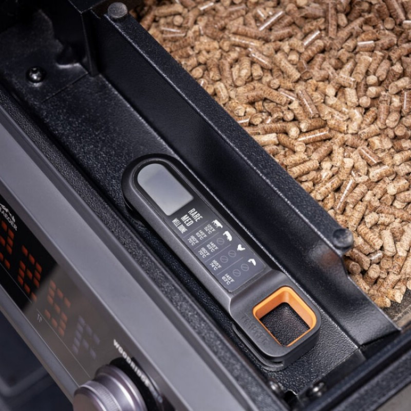 Teplomer Traeger pomáha dosiahnuť presný výsledok pri príprave mäsa bez nutnosti odhadovania. Vďaka vodeodolnému prevedeniu sa ľahko čistí a zvláda bežné používanie pri grilovaní. Magnetické puzdro umožňuje praktické uloženie priamo pri grile alebo v kuchyni. Skladacia konštrukcia zaberá minimum miesta a zvyšuje bezpečnosť pri prenášaní. Napájanie na 2× AAA batérie (sú súčasťou balenia) zabezpečuje okamžitú pripravenosť na použitie.