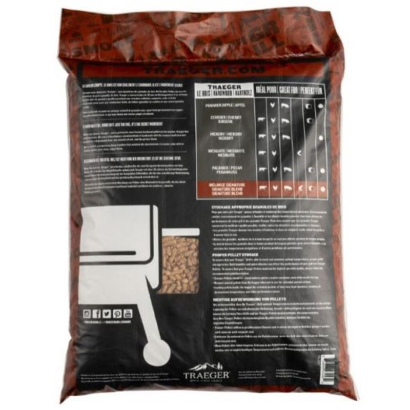 Drevené pelety Traeger Signature 9 kg z tvrdého dreva hickory, javora a čerešne. Univerzálna zmes pre grilovanie, údenie aj Low & Slow BBQ.