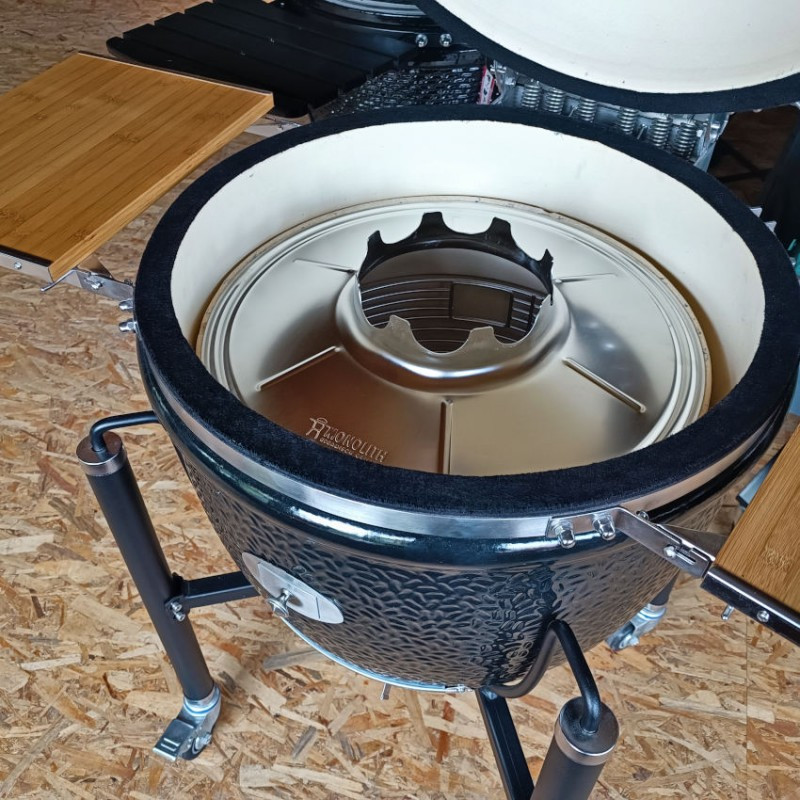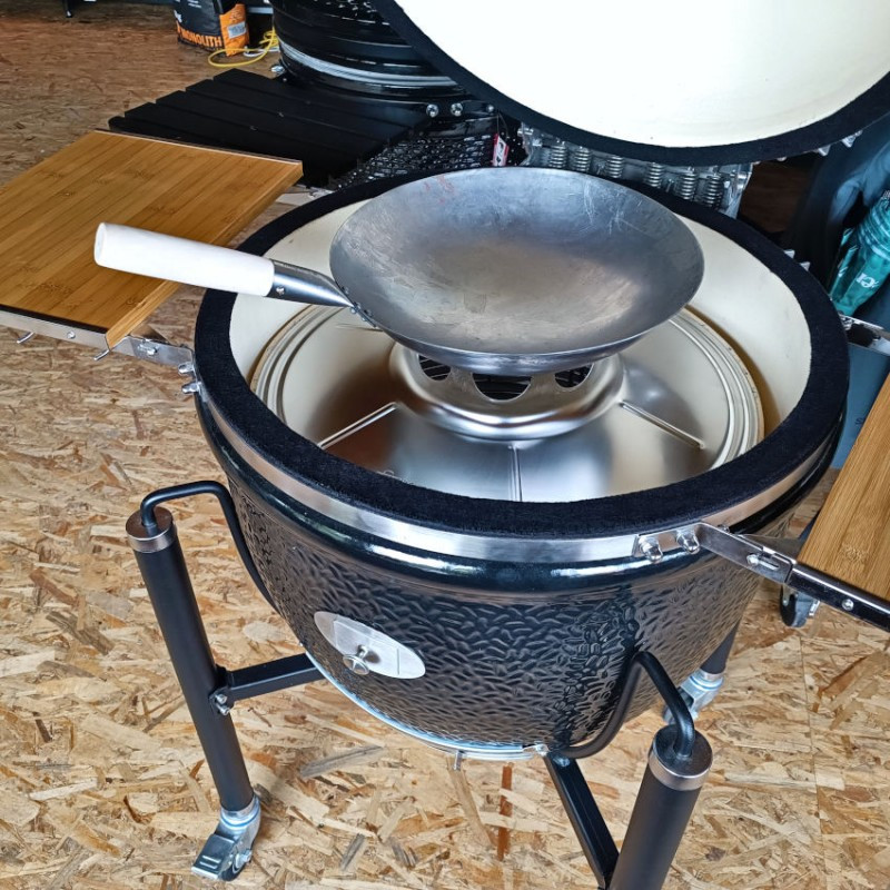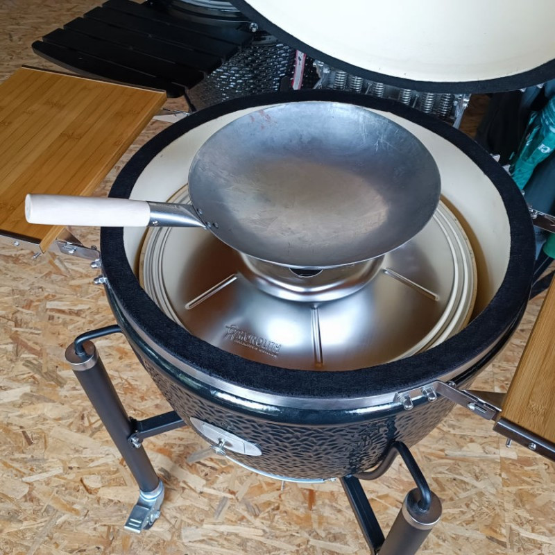 Nerezový držiak na Wok panvicu s okrúhlym dnom sa umiestni priamo na keramický prstenec keramického grilu Monolith Classic.