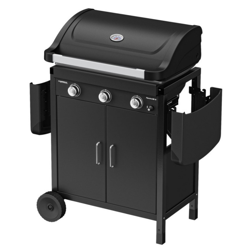 Plynový gril Campingaz Plancha EX3 s 3 horákmi, liatinovým táľom a poklopom s teplomerom. Veľká grilovacia plocha, rovnomerné teplo a pohodlné ovládanie.