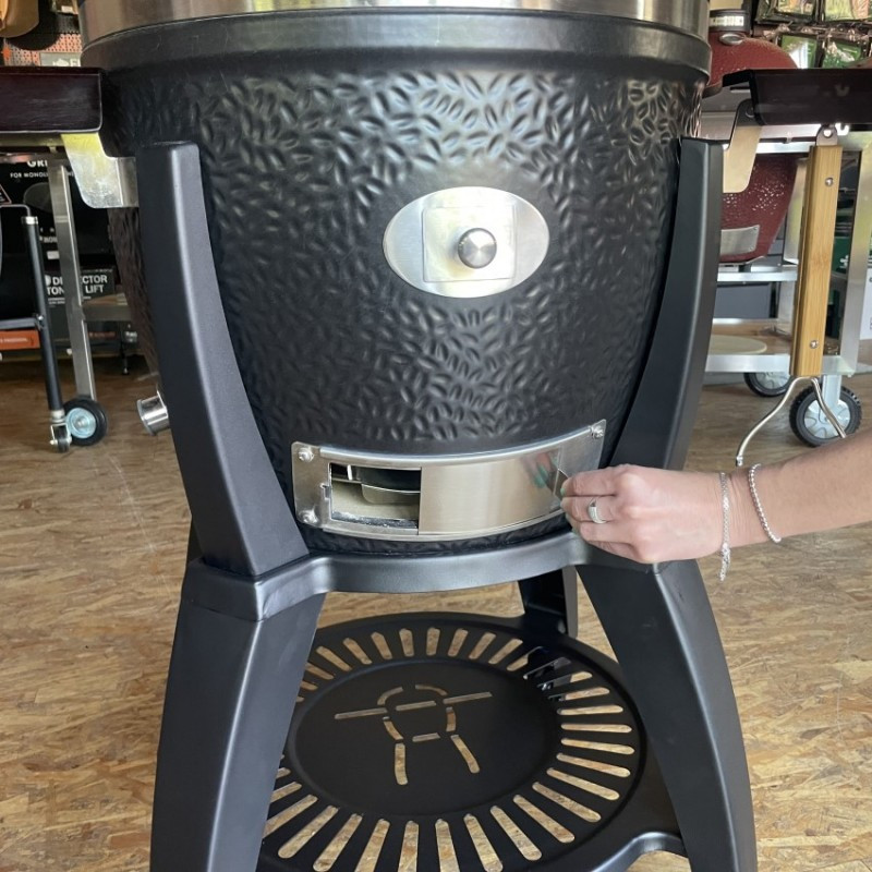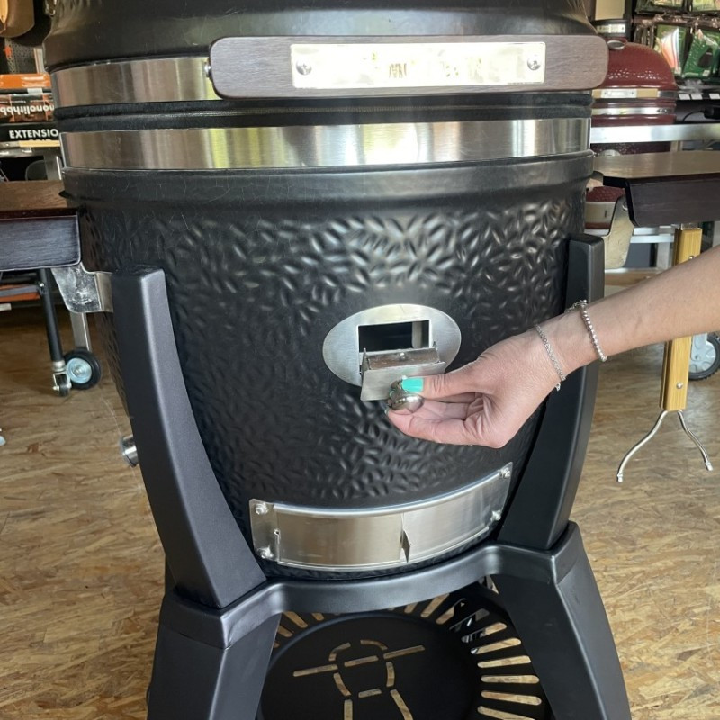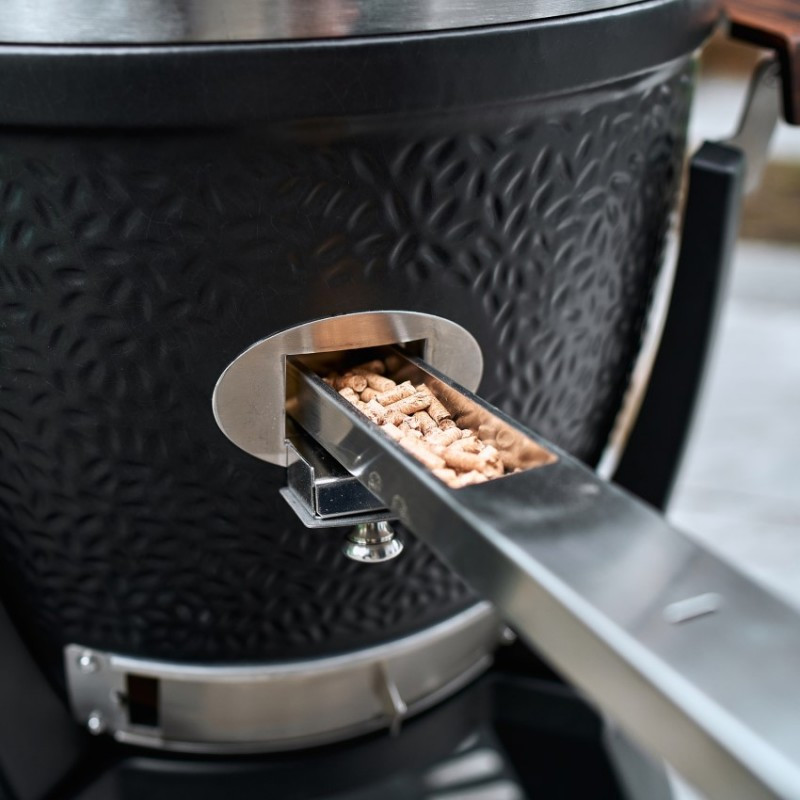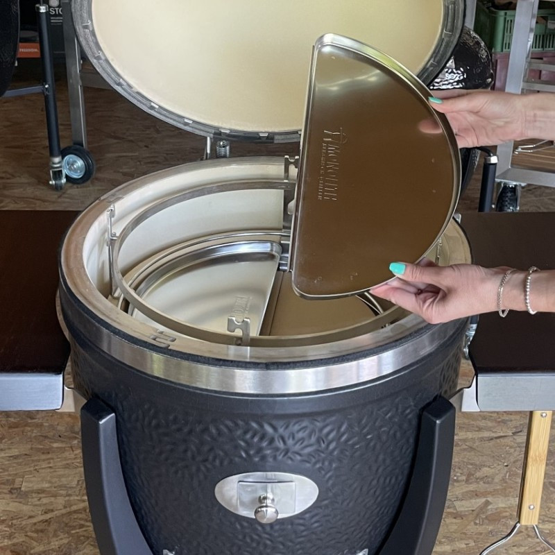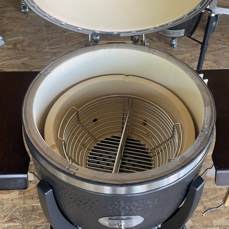 | Základné vybavenie | keramický gril s čiernou matnou glazúrou, keramické nožičky, madlo s LED svetlom, zabudovaný teplomer vo veku grilu, liatinová klapka pre odvod vzduchu, výškovo nastaviteľný systém roštov SGS (2x grilovací nerezový rošt, 2x deflektor, 2x odkvapkávacia miska), ohnisko udiacich peliet, kôš na uhlie, zdvíhač roštu, lopatka na popol |
