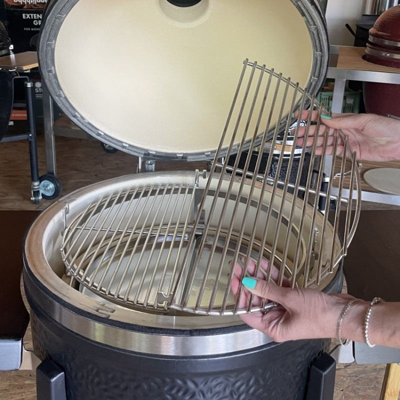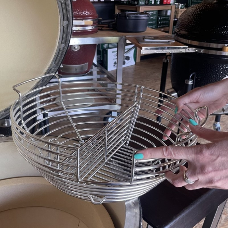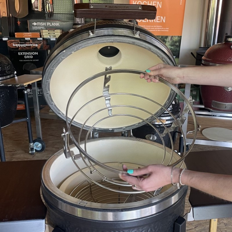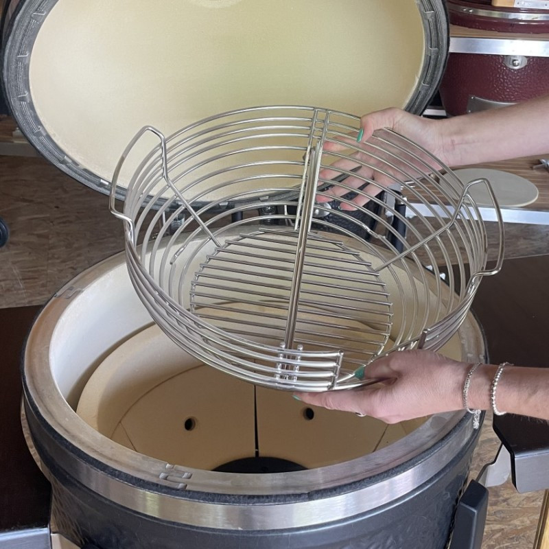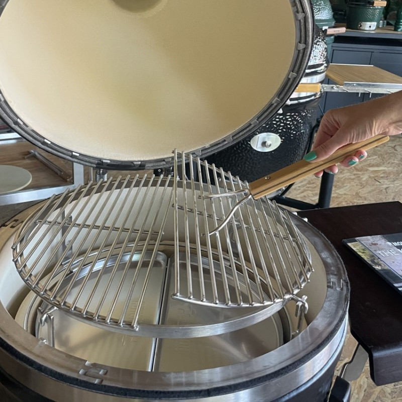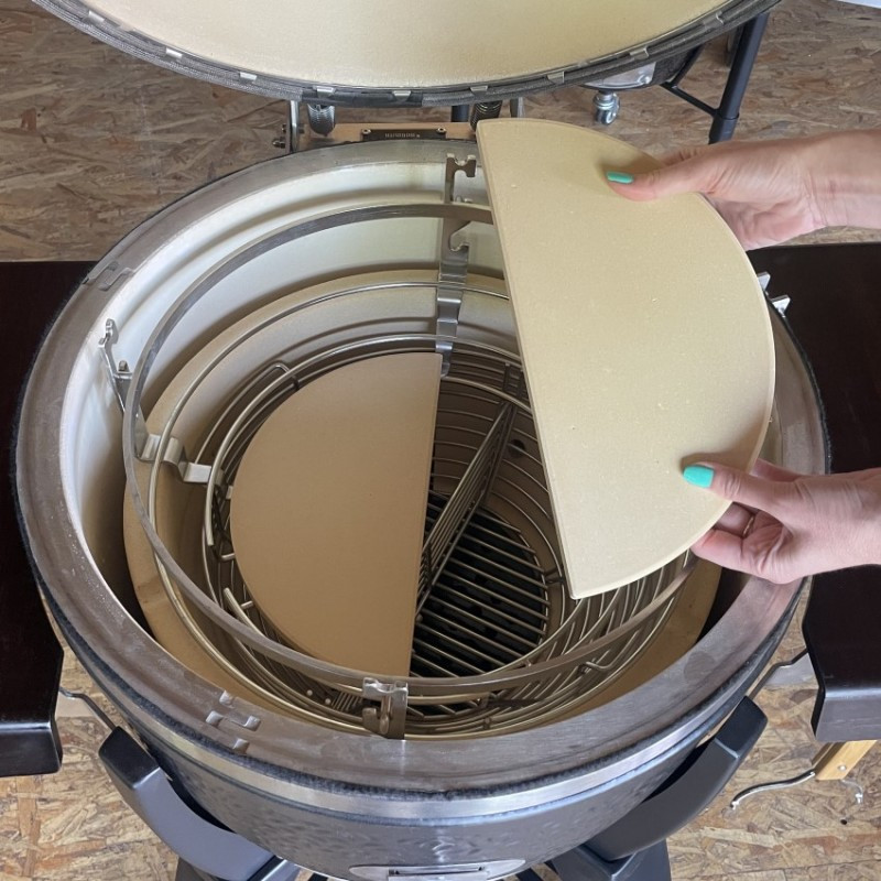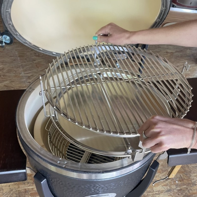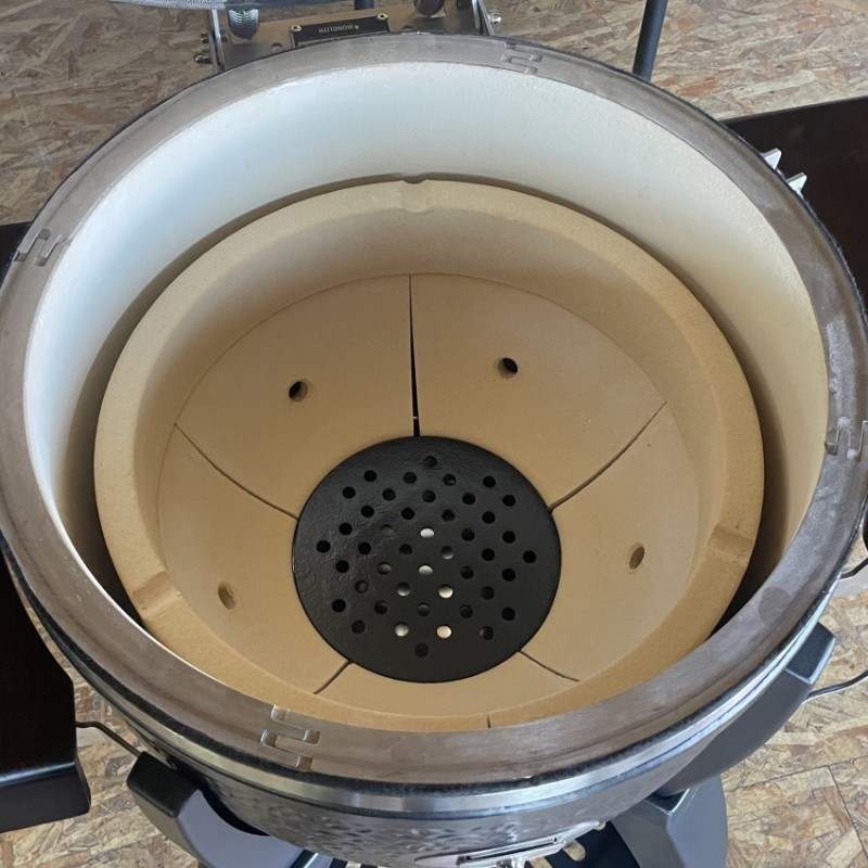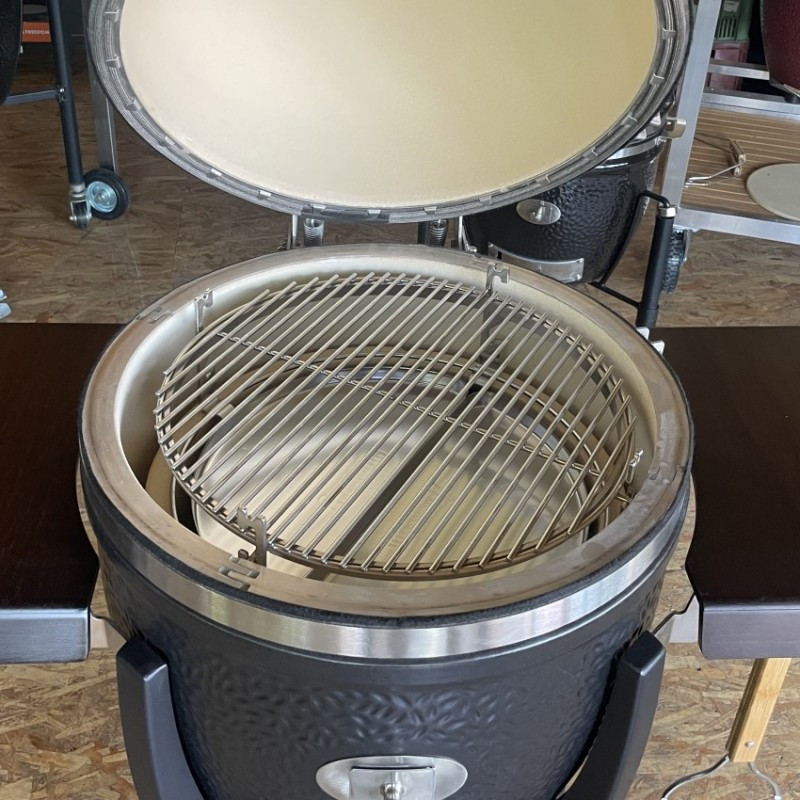 Kotlový gril z masívnej keramiky vybavený grilovacím roštom s priemerom 44 cm. Univerzálny gril s bohatým užívateľským rozhraním – 4 metódy grilovania (priame a nepriame, údenie a pečenie).