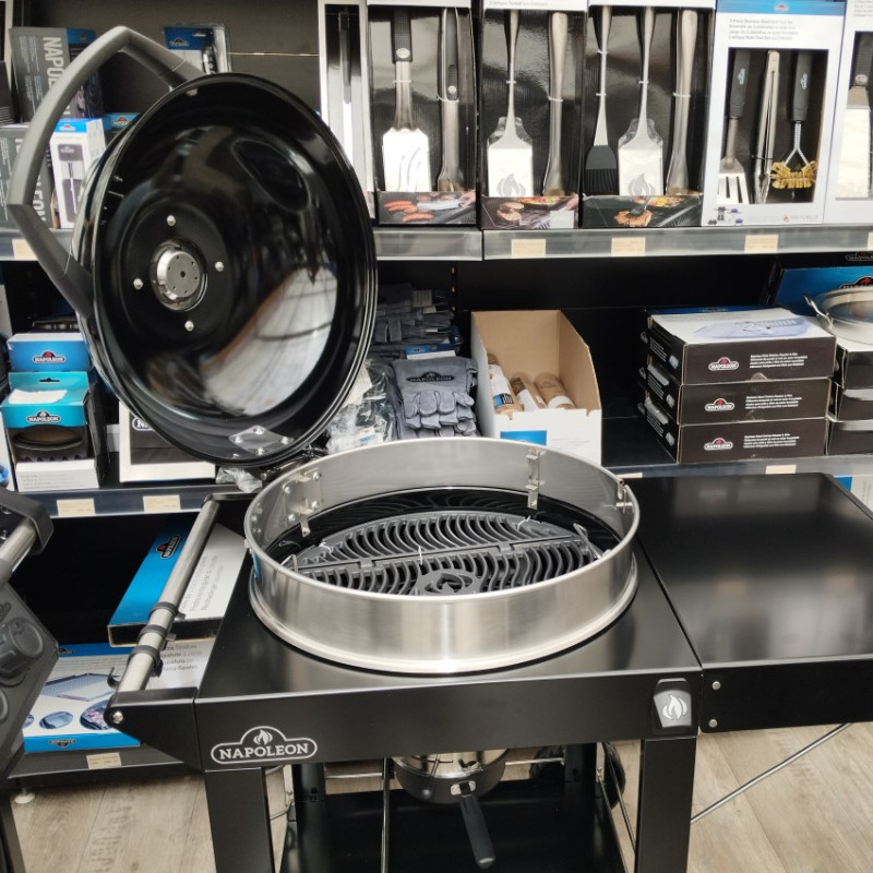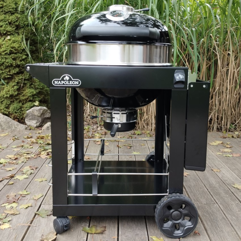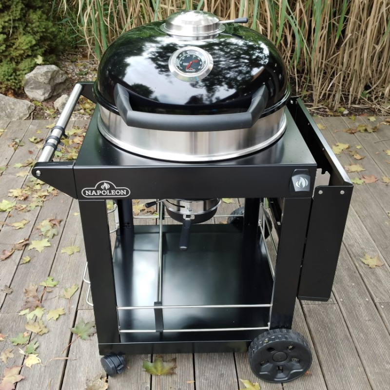 Veľký gril na drevené uhlie Napoleon Charcoal Cart 3 s liatinovým roštom Ø 57 cm, praktickým vozíkom a presnou reguláciou teploty.