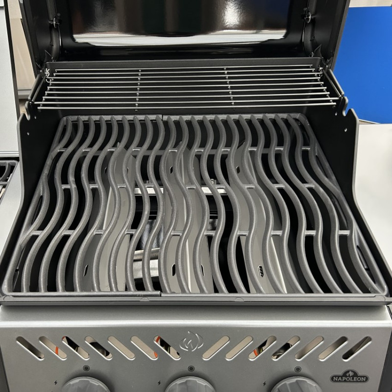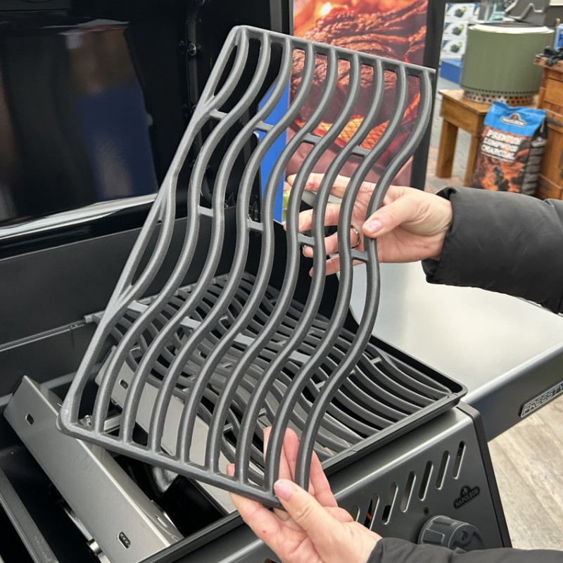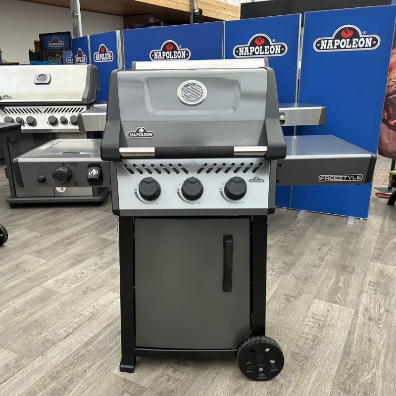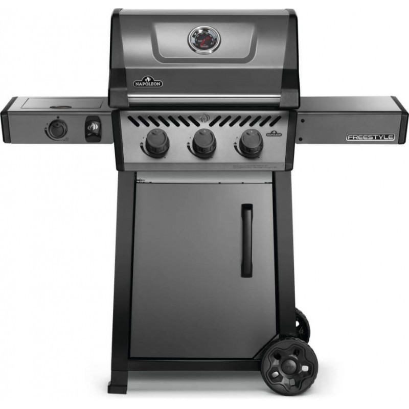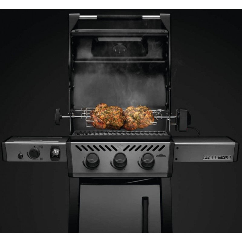 Napoleon Freestyle 365 je plynový gril vhodný pre každodenné grilovanie na záhrade aj terase. Ponúka vyvážený výkon a praktické funkcie pre pohodlnú prípravu jedál. Bočný infračervený horák Sizzle Zone až do 800 °C umožňuje rýchle zatiahnutie steakov a lepšiu kontrolu nad výsledkom. Tri nerezové horáky zabezpečujú rovnomerné rozloženie tepla v celej komore. Liatinový rošt WAVE s porcelánovým povrchom poskytuje stabilnú plochu pre rôzne typy grilovania.