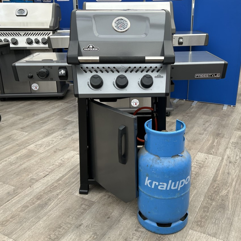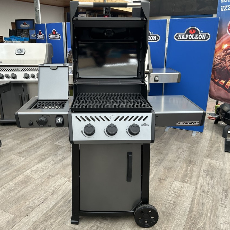 Plynový gril Napoleon Freestyle 365 s 3 horákmi a Sizzle Zone až 800 °C. Liatinový rošt WAVE, vysoký výkon a rovnomerné rozloženie tepla.