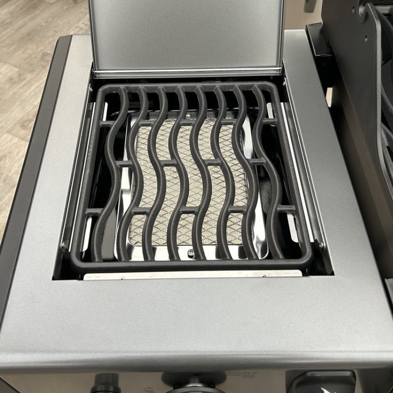 | Základné vybavenie | 3 nerezové horáky, bočný infračervený horák SIZZLE ZONE, zapaľovací systém JET-FIRE, liatinový rošt WAVE, termosonda s budíkom, sklápacia polička, rozptyľovače tepla |