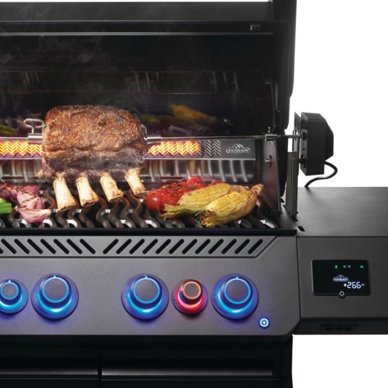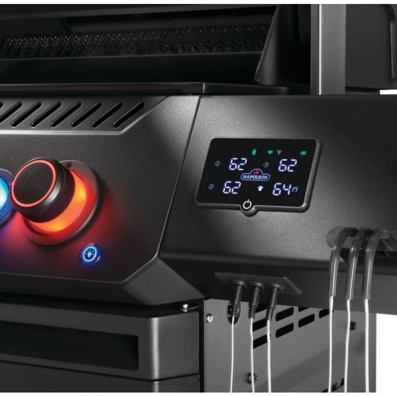 Napoleon Phantom P500 EVO je moderný plynový gril pre náročné grilovanie s dôrazom na presnosť a kontrolu. Vďaka pokročilým technológiám máte priebeh prípravy jedla vždy pod kontrolou. Integrovaný LCD displej s teplotnými sondami umožňuje sledovať teplotu v grile aj v mäse priamo na displeji alebo v mobilnej aplikácii. Štyri hlavné horáky zabezpečujú rovnomerné rozloženie tepla po celej ploche. Bočný infračervený horák Sizzle Zone zvládne rýchle zatiahnutie steakov pri extrémnych teplotách.