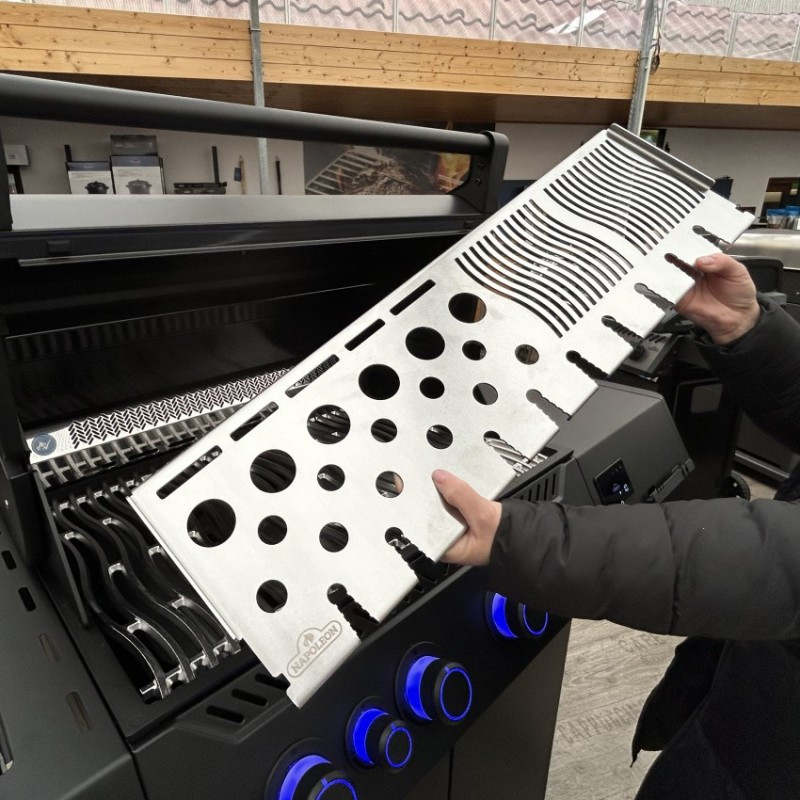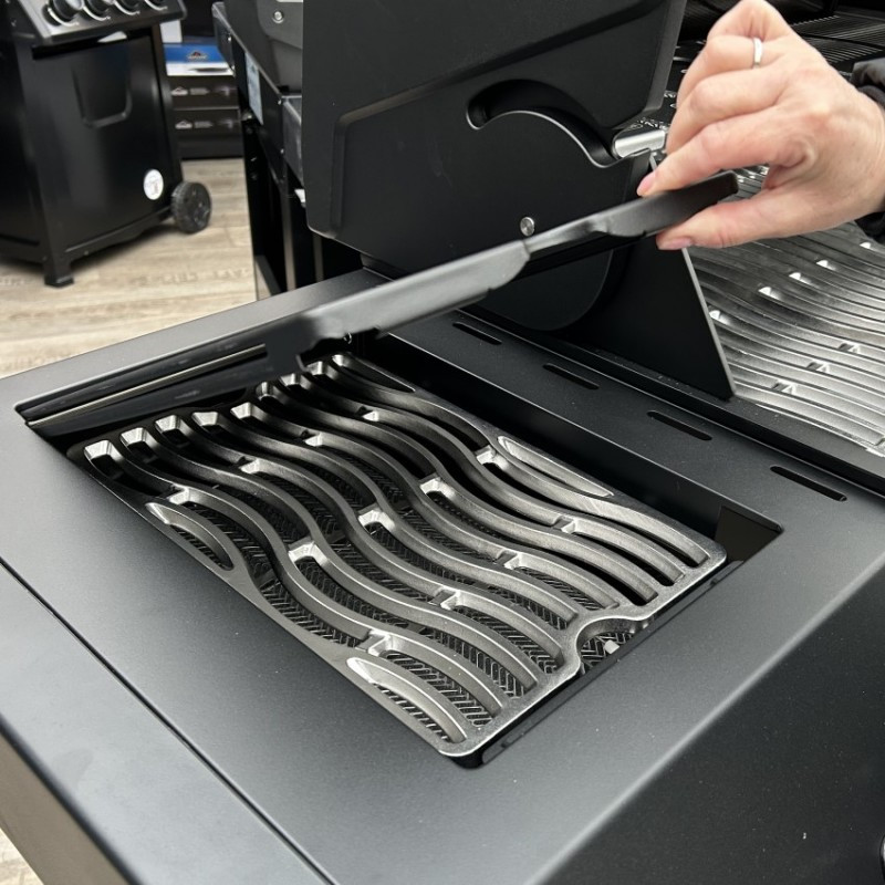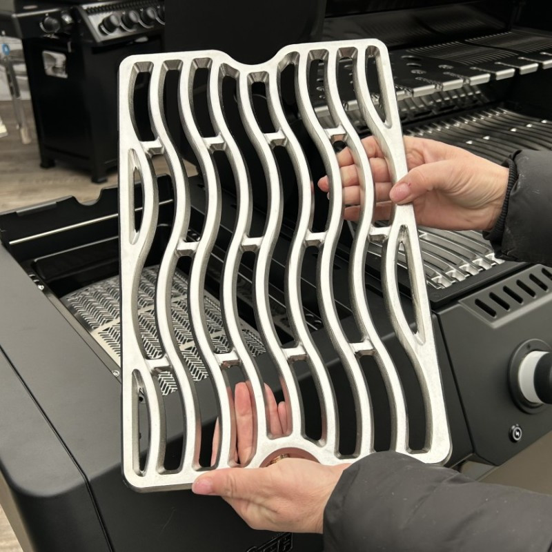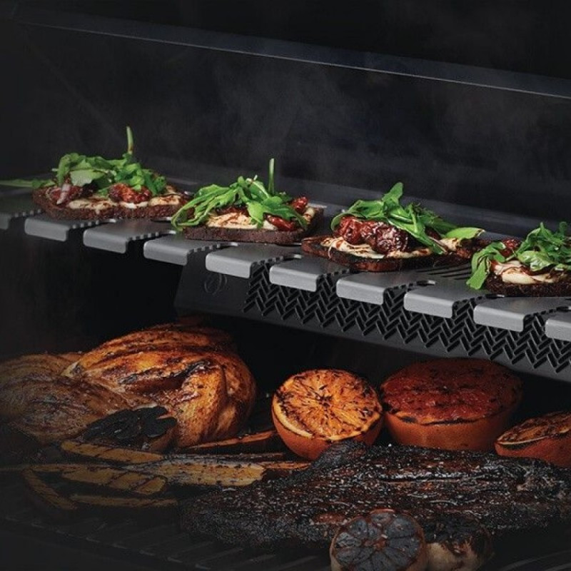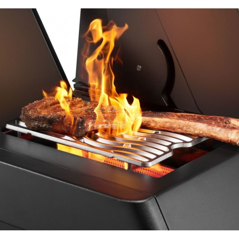 | Základné vybavenie | masívny liaty nerezový rošt, 4x nerezové horáky, 1x bočné SIZZLE ZONA, 1x zadný horák, bočné pultíky, skrinka na plynovú bombu, dohrievací rošt, digitálny panel, 3x teplotná sonda do mäsa |