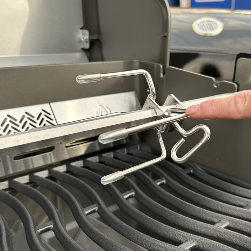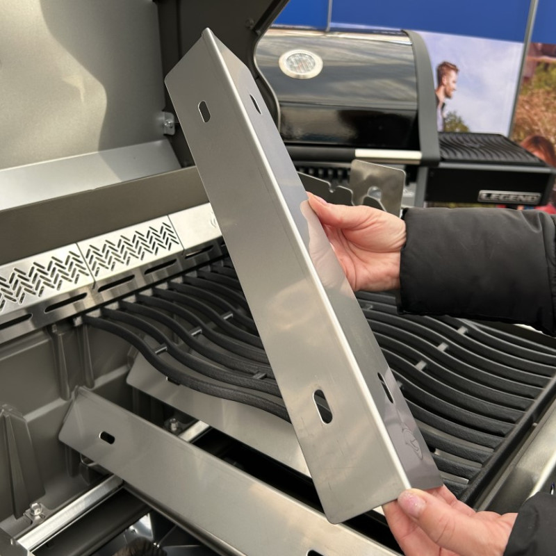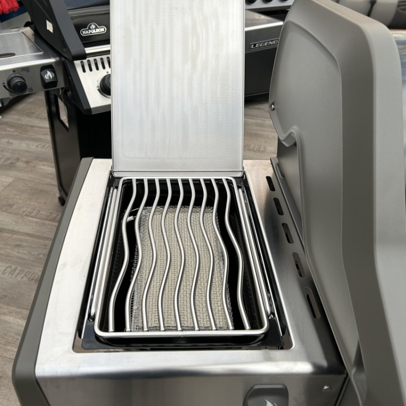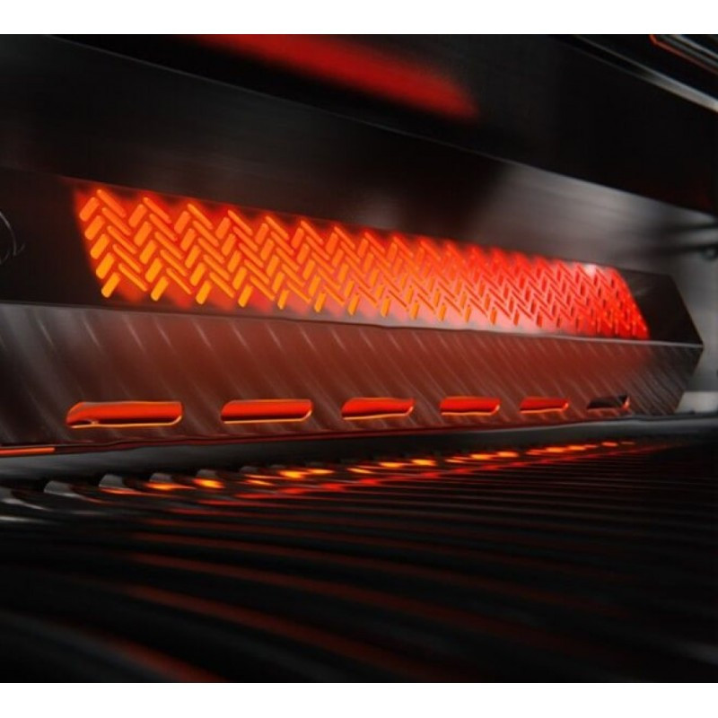 | Základné vybavenie | 3 nerezové horáky, 1 bočný SizzleZone, zadný infrahorák, termosonda v poklope, liatinový rošt WAVE, systém zapaľovania JET-FIRE, 2x nerezový stolík (pravý sklápací) |