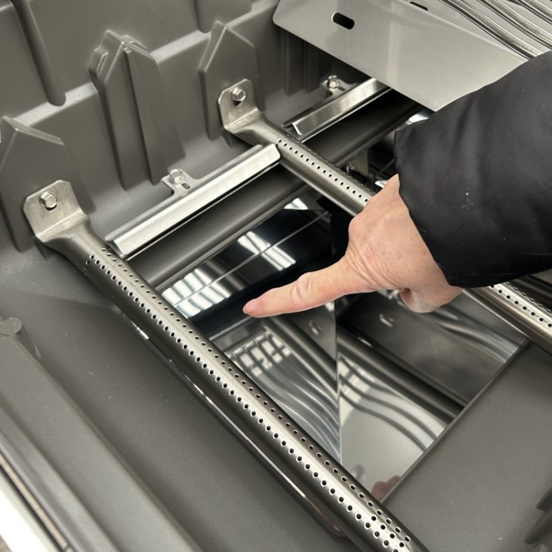 | Základné vybavenie | 4 nerezové horáky, 1 bočný horák, 1 zadný infra horák, zapaľovací systém JET-FIRE, zvlnený nerezový rošt WAVE, teplomer s budíkom, sklápací stolček |
