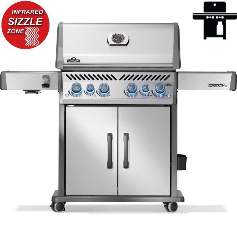 Plynový gril Napoleon Rogue 525 PRO-S v nerezovom prevedení so 4 horákmi, Sizzle Zone a zadným infra horákom. Nerezový rošt WAVE a vysoký výkon pre náročné grilovanie.