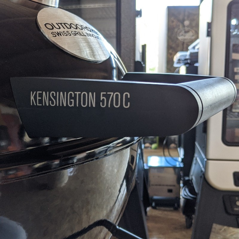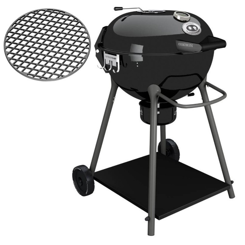 Prémiový gril na drevené uhlie Outdoorchef KENSINGTON 570C Special Edition s liatinovou mriežkou Diamond, vekom na pánte a systémom EASY SLIDE pre presné grilovanie.