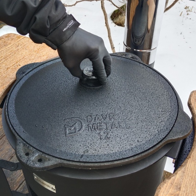 Prémiový kotlíkový set s 12l liatinovým kotlíkom, 5 mm oceľovým kotliskom, deflektorom, nerezovým komínom a bočnými policami. Vhodný na guláš aj varenie v prírode.