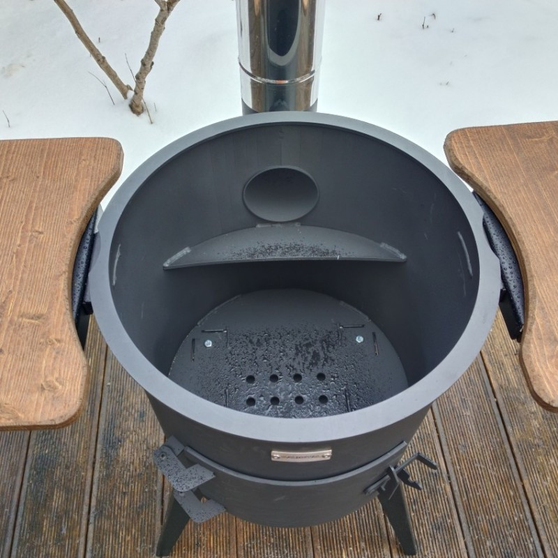 Oceníte poctivú kvalitu spracovania, hrubostenné oceľové kotlisko, ktoré vydrží roky, aj premyslené detaily ako deflektor, výsuvný popolník či odnímateľné police. Set je navrhnutý tak, aby ste mohli pohodlne variť vonku – bez ohýbania, bez pripálenín, s dokonalou kontrolou horenia. Ak hľadáte kotlíkový set, ktorý zvládne pravidelné použitie a poteší aj na pohľad, toto je výborná voľba.