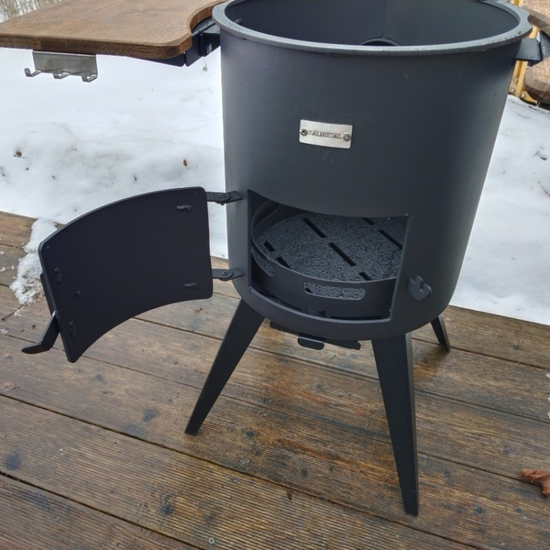 Tento prémiový model ponúka mimoriadnu stabilitu a odolnosť vďaka 5 mm silnému oceľovému kotlisku. Premyslený deflektor plameňa zabezpečuje rovnomerné varenie bez pripaľovania, zatiaľ čo nerezový komín s klapkou umožňuje kontrolu horenia. Dve bočné police poskytujú praktický priestor na náradie a suroviny, a výsuvný popolník uľahčuje údržbu. Tento set je ideálny na každodenné varenie pod holým nebom aj na víkendové záhradné oslavy.