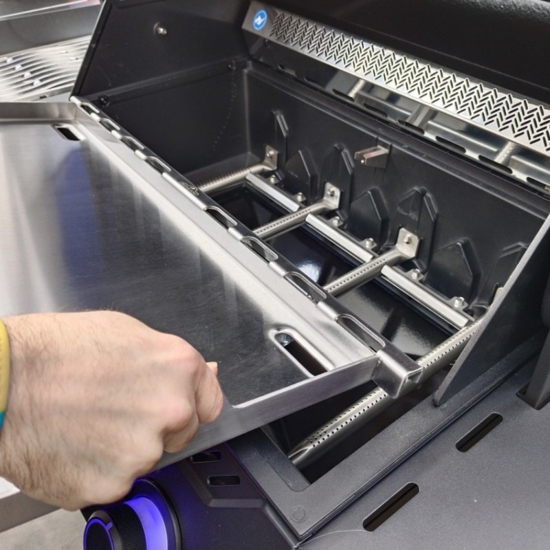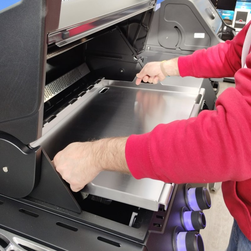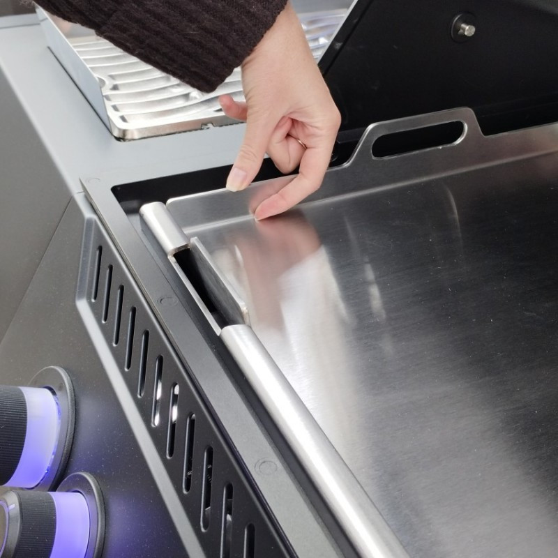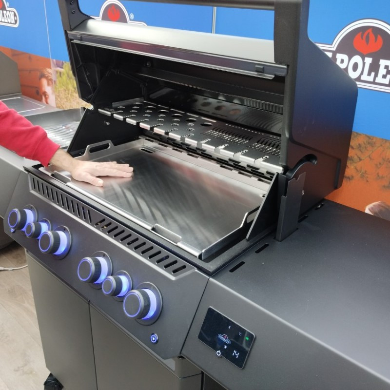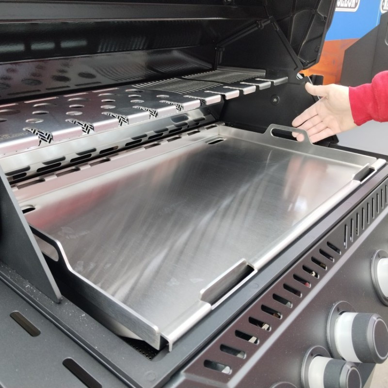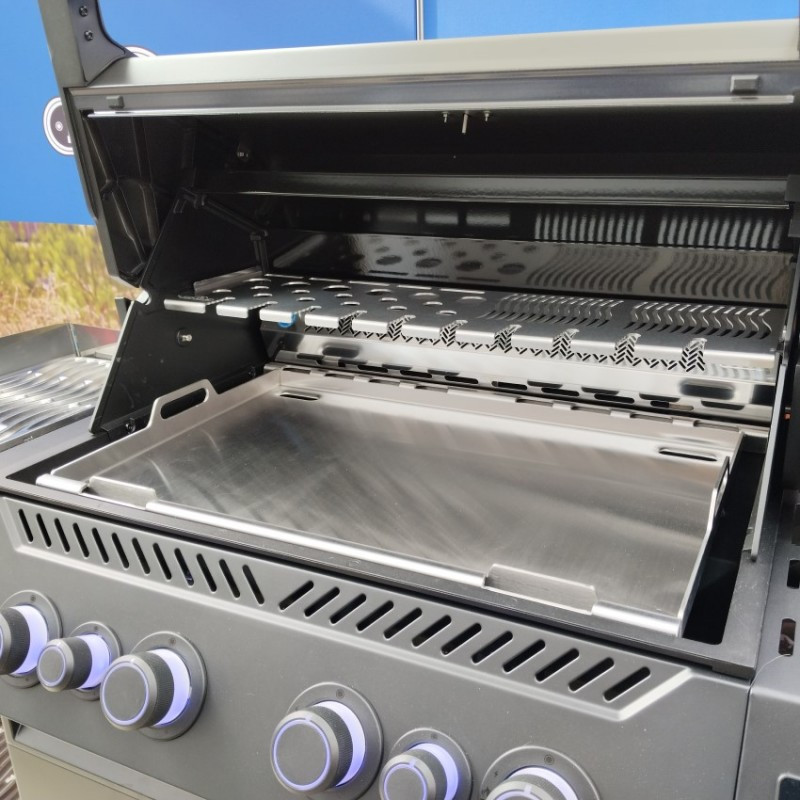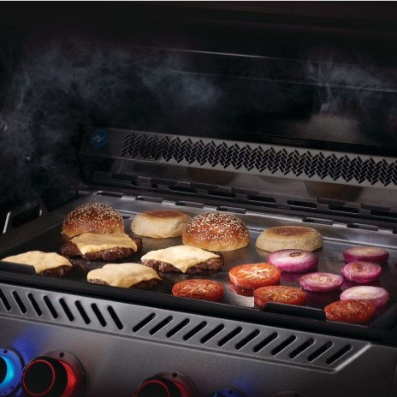 Veľká nerezová grilovacia doska cez celú plochu grilu Napoleon Rogue 525 a Prestige/PRO 500 poskytuje dostatok priestoru pre Vaše varenie.