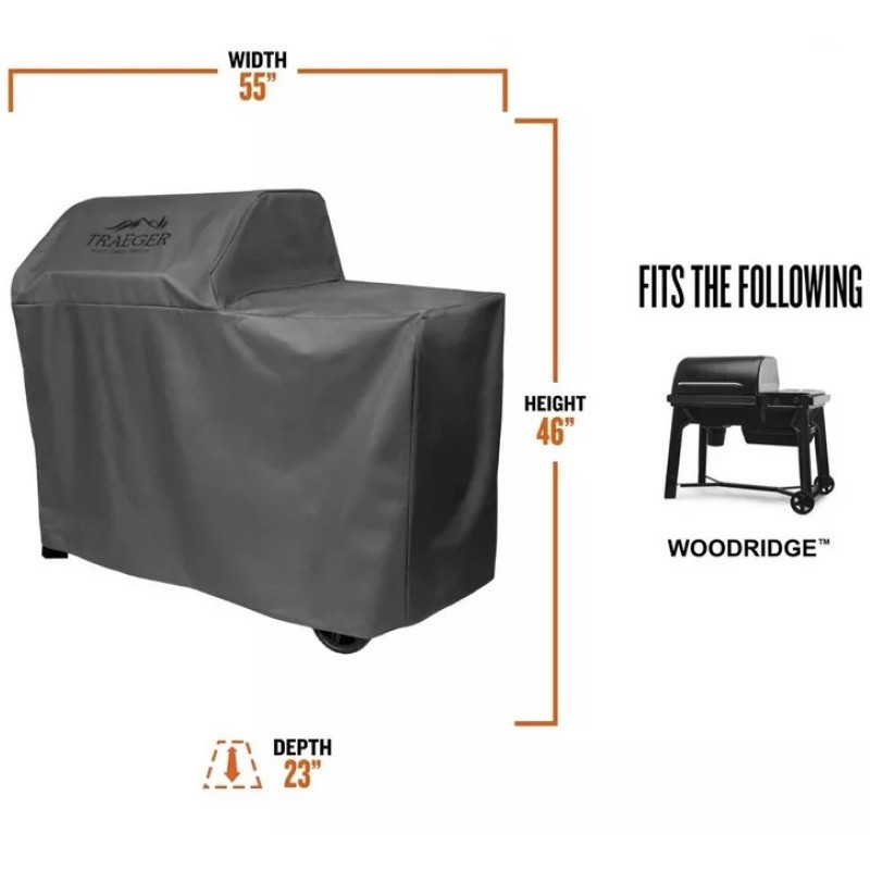 Vodeodolný obal na gril Traeger Woodridge z odolného all-weather materiálu. Chráni pred dažďom, mrazom, slnkom aj nečistotami počas celého roka.