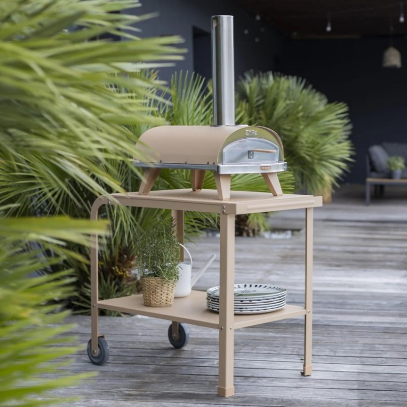 Pec na pizzu ZiiPa Piana na drevo aj drevené pelety v modernej pieskovej farbe.