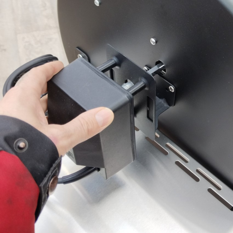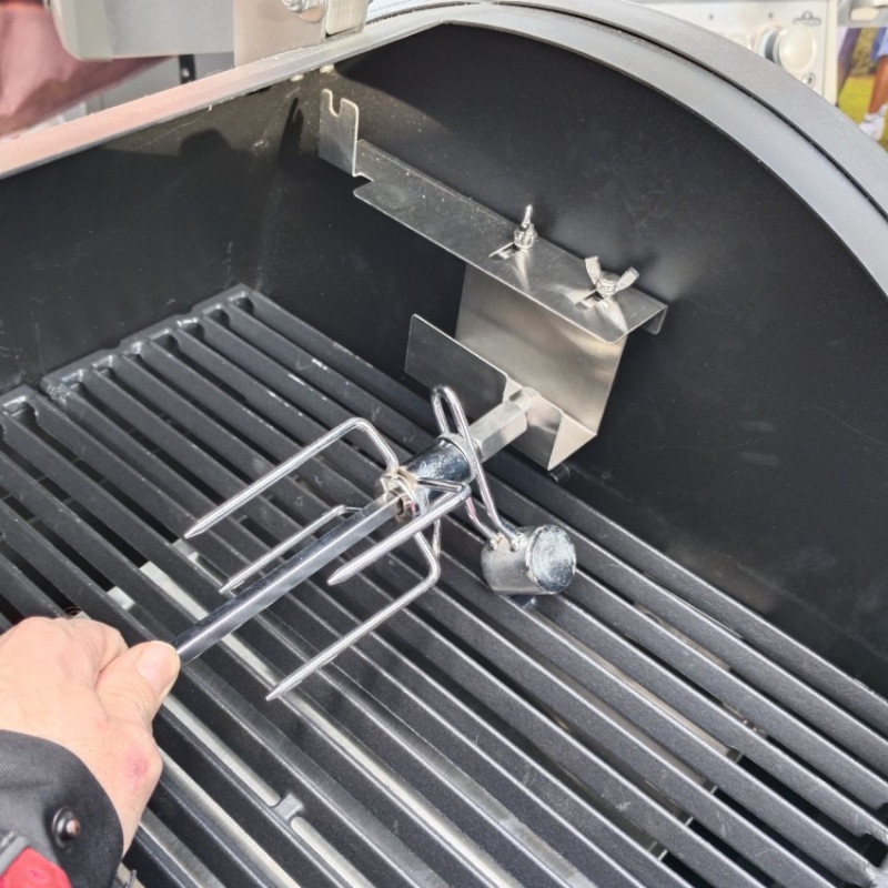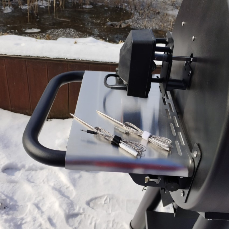 | Základné vybavenie | elektrický otočný ražeň, prehľadný LCD displej, automatický podávač a zapaľovač peliet, plech na odkvapový tuk, miska na odkvapkávajúci tuk, liatinové rošty, dohrievací rošt, bočné police, 2x teplotná sonda do mäsa, zásobník peliet, komín s uzáverom Roto-Draft, zdvíhač roštov |