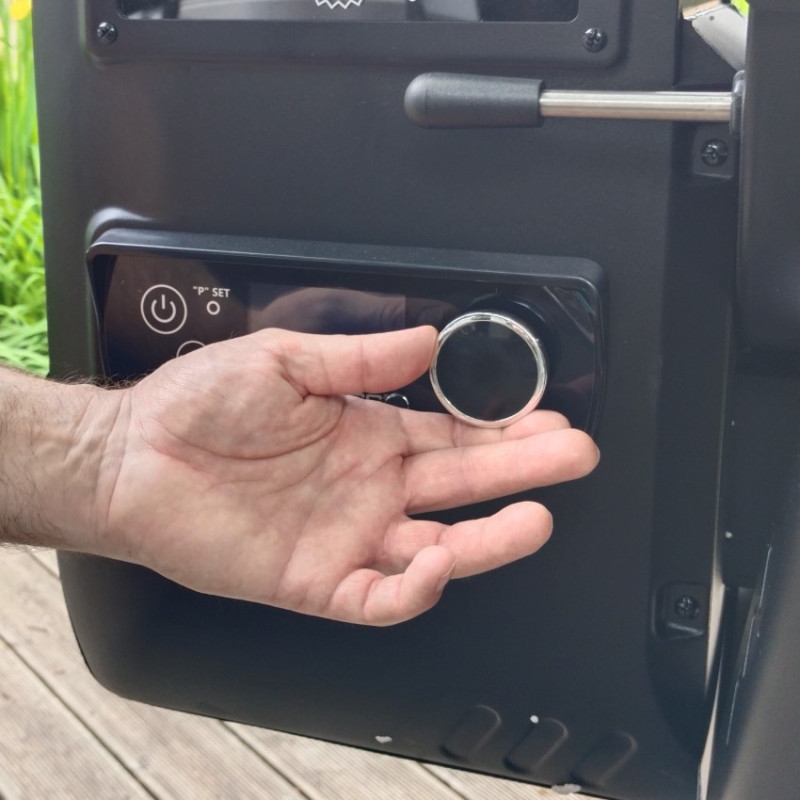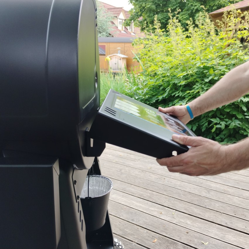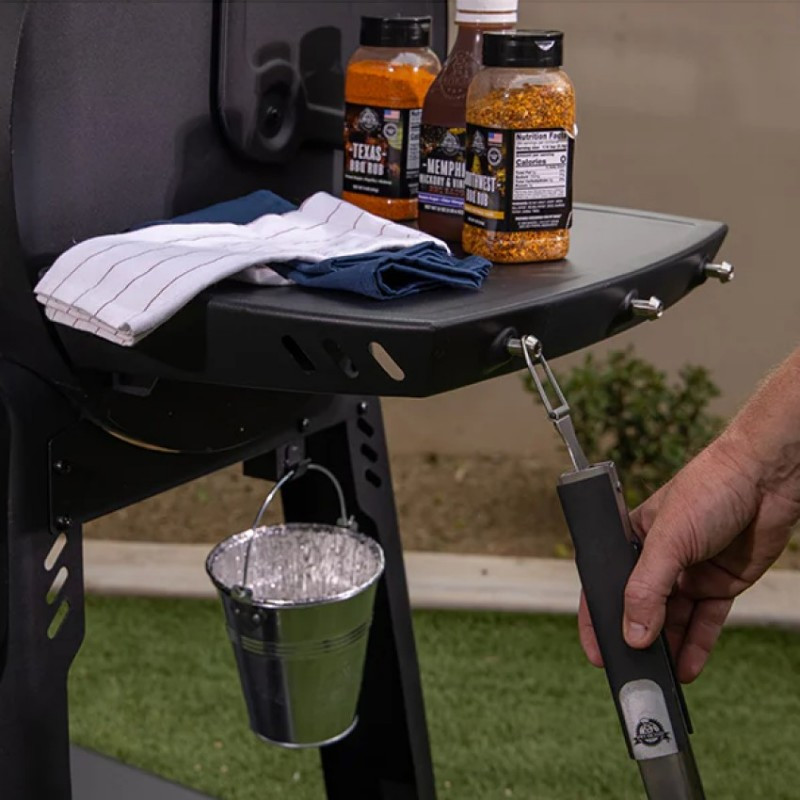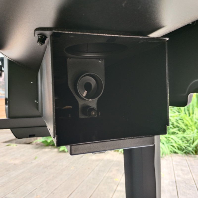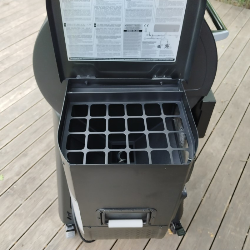 | Základné vybavenie | dotykový displej, automatický podávač a zapaľovač peliet, plech na odkvapový tuk, kýblik na tuk, porcelánom potiahnuté rošty, stredný a vrchný rošt, predná sklopná polica, bočné police s háčikmi na nástroje, 2 sondy do mäsa |