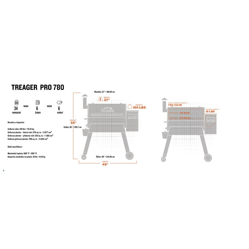 Peletový gril Traeger PRO 780 patrí medzi moderné americké BBQ grily na drevené pelety, ktoré spájajú autentickú chuť dymu s pohodlným digitálnym ovládaním. Umožňuje pripravovať jedlá rôznymi spôsobmi – od pomalého údenia metódou low & slow až po klasické grilovanie alebo pečenie. Vďaka stabilnému spaľovaniu peliet a presnej regulácii teploty dosiahnete rovnomerné výsledky pri každom grilovaní. Veľkou výhodou je technológia WiFIRE umožňujúca ovládanie grilu cez mobilnú aplikáciu, ktorá vám dáva plnú kontrolu nad teplotou aj priebehom prípravy jedla. Tento model ponúka veľkú grilovaciu plochu a je ideálny pre rodinné grilovanie aj väčšie BBQ stretnutia.