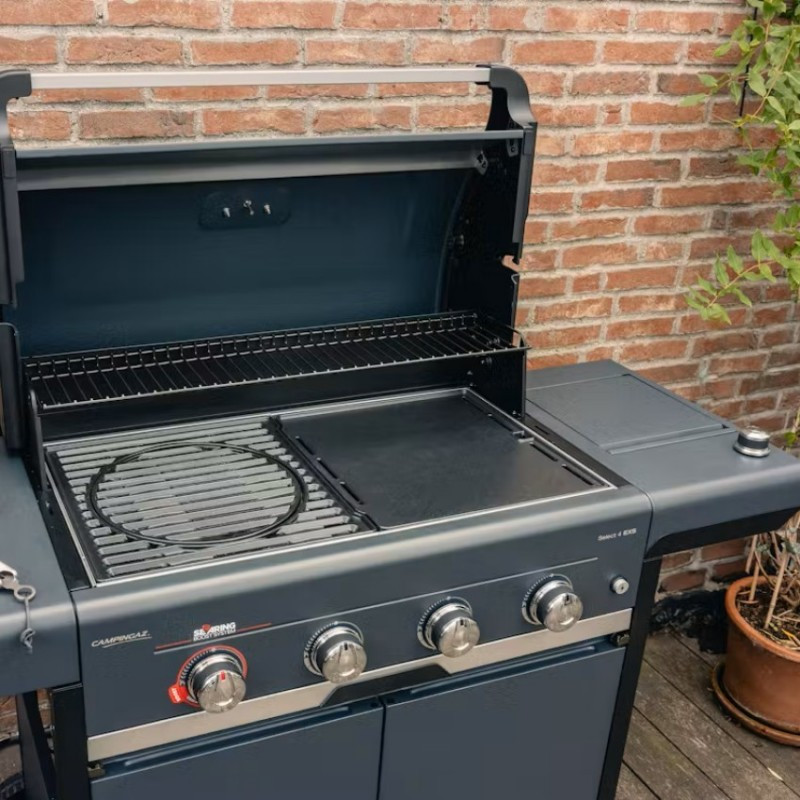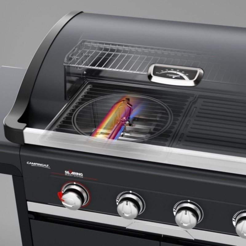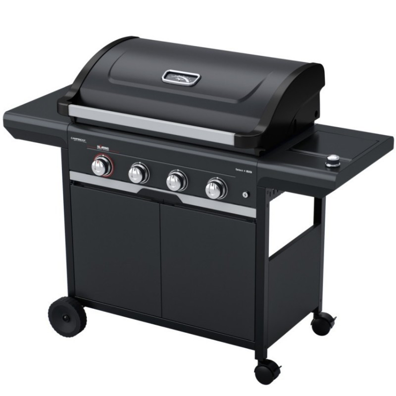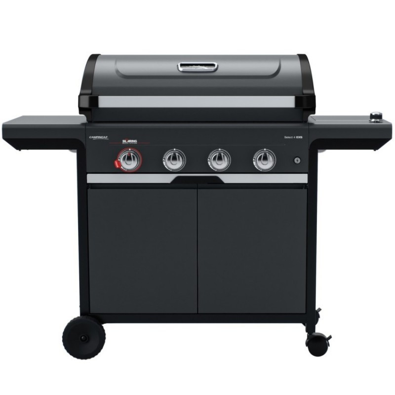 Plynový gril Campingaz Select 4 EXS so 4 horákmi, Searing Boost a liatinovým roštom. Ideálny na rýchle nahriatie a rovnomerné grilovanie pre viac osôb.