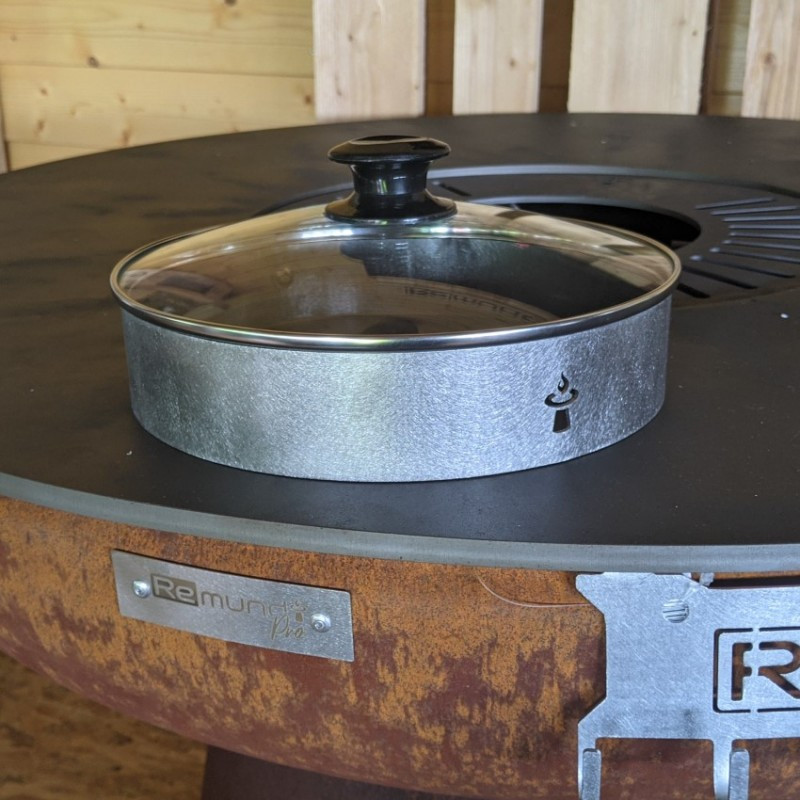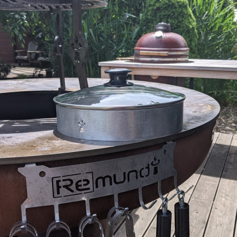 Grilovací krúžok vhodný pre všetky modely grilovacích ohnísk Remundi. Krúžok sa používa ako panvica, pričom jej dno nahrádza grilovacia plocha ohniska.