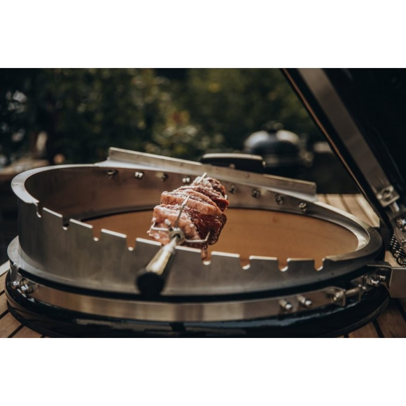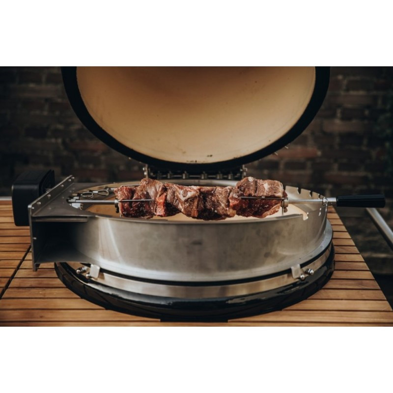 Rotisséria na pohodlnú prípravu kurčiat, gyrosu a väčších kusov mäsa na ražni určená pre keramické grily Monolith LeCHEF.