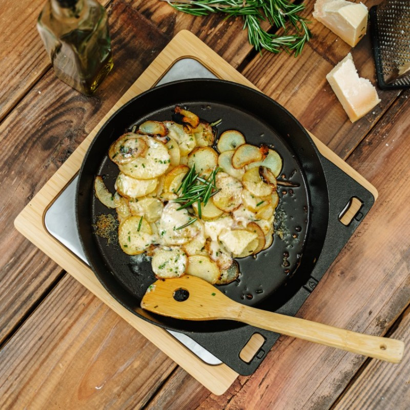 4-dielna sada liatinového riadu a praktického príslušenstva určená na použitie v peci na pizzu Solo Stove.