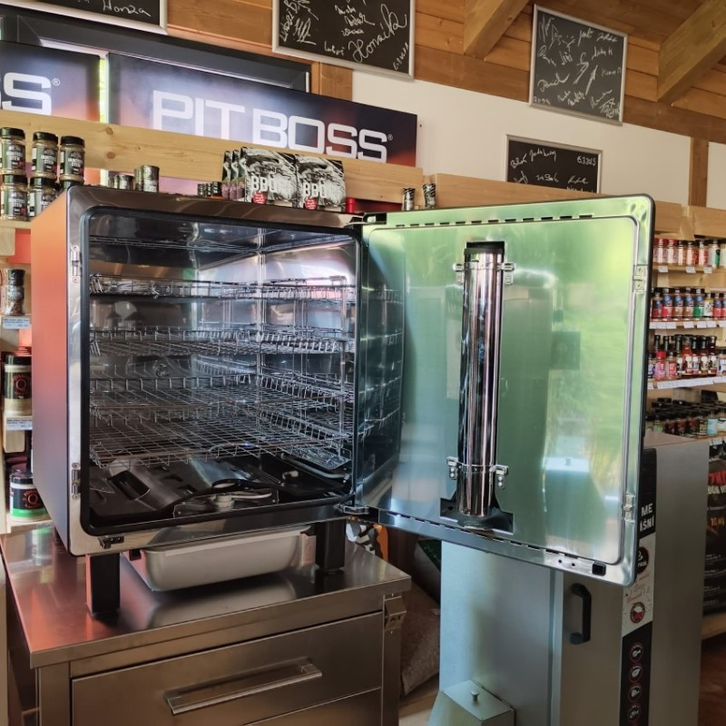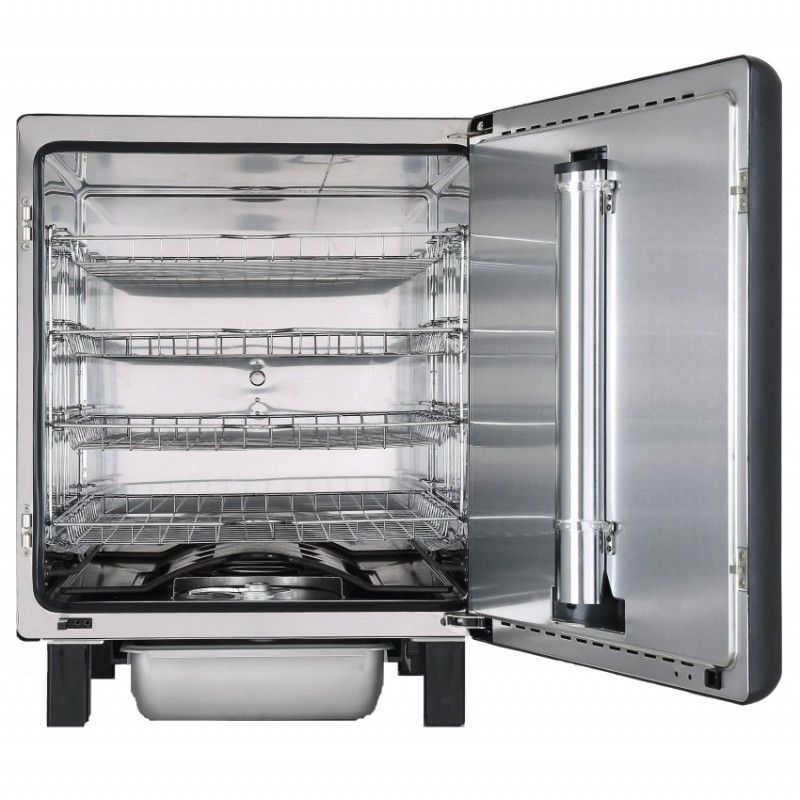 Bradley Smoker Raven je výnimočná vo svojej kombinácii plne automatickej prevádzky, profesionálnej konštrukcie a mimoriadne presného riadenia procesu údenia. Ponúka stabilnú teplotu, pohodlné digitálne ovládanie a tichý, spoľahlivý generátor dymu so zásobníkom na dlhé hodiny nepretržitej prevádzky. Vďaka dvom špirálam sa rýchlo nahrieva a udržiava teplotu až do 160 °C, takže okrem údenia zvládne aj pomalé grilovanie technikou Low & Slow. Dve sondy do mäsa, kvalitné nerezové rošty, odolný vonkajší plášť a prepojenie cez Bluetooth robia z tohto modelu udiareň, ktorá vám poskytne profesionálne výsledky bez námahy a s maximálnym komfortom ovládania.
