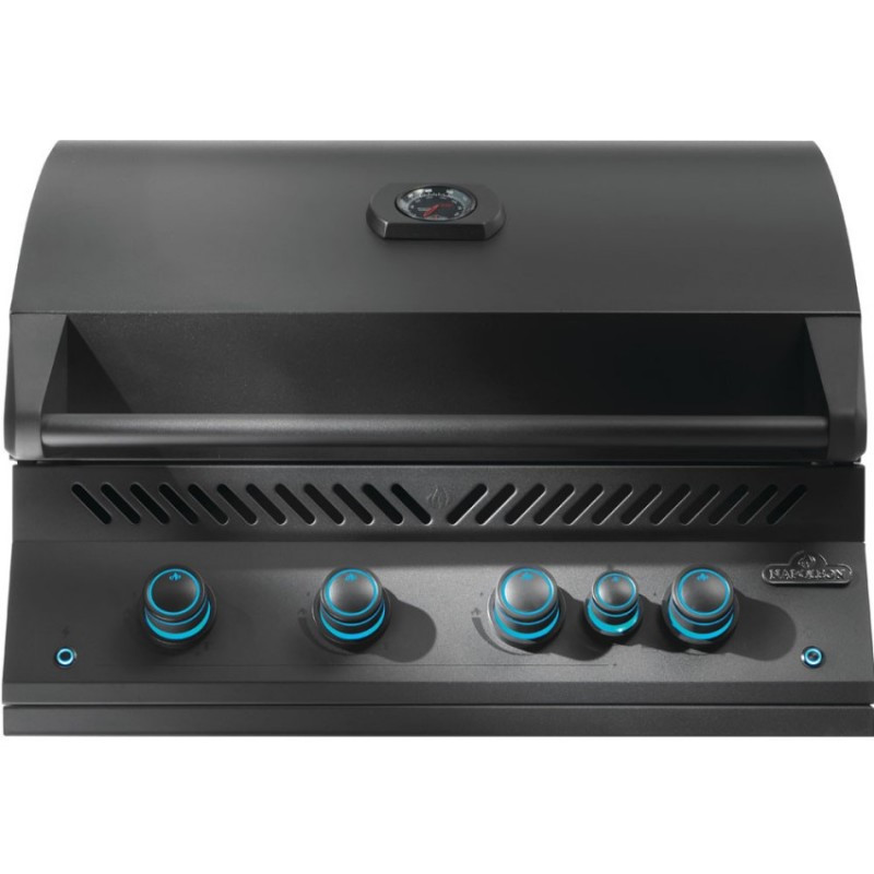 Plynový gril Napoleon BIG 32 Phantom v matne čiernej farbe určený na vstavanie do vonkajšej kuchyne.