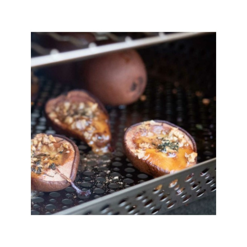 Umožňuje bezpečné a pohodlné údenie menších surovín bez rizika ich prepadnutia. Perforovaná nerezová oceľ zaručuje rovnomerné údenie a dlhú životnosť. Jednoduchá manipulácia, možnosť umývania v umývačke a univerzálne využitie z neho robia praktický doplnok ku každej udiarni Borniak 150.