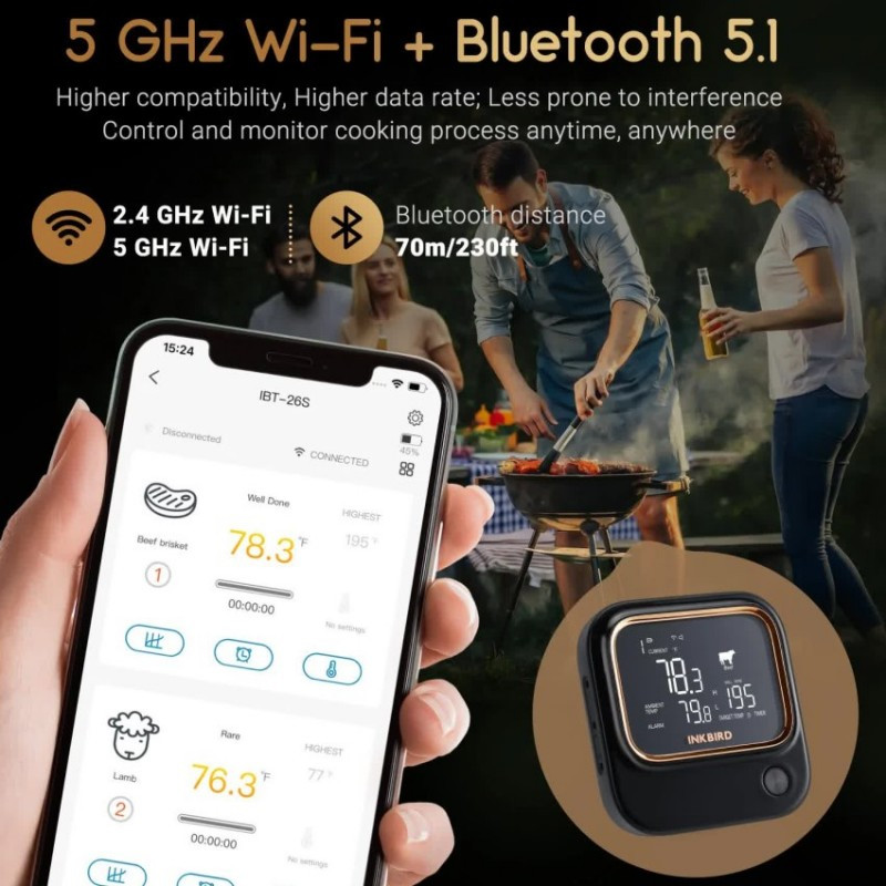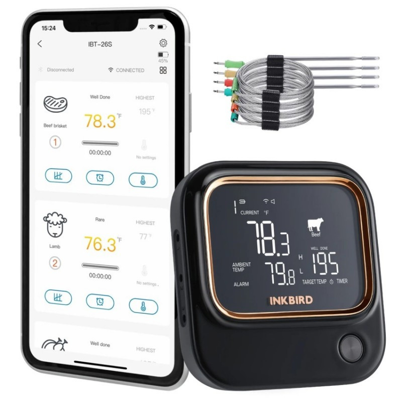 WiFi+Bluetooth BBQ teplomer INKBIRD so 4 sondami