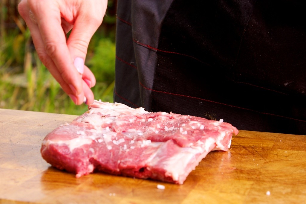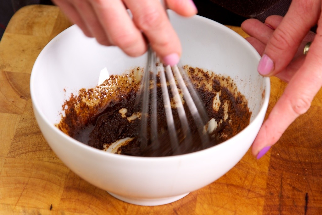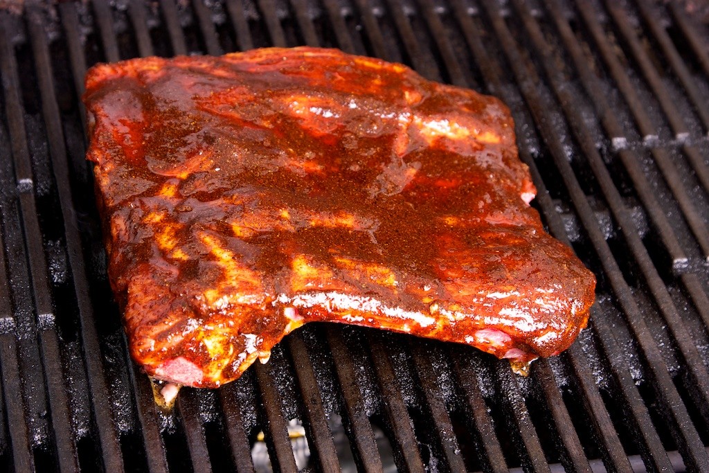 Postup: Mäso odložíme na doštičku, v mise zmiešame kávové korenie s chilli, sójovou omáčkou a olejom, vymiešame do hladkej redšej marinády. Podľa chuti môžeme pridať aj trochu kečupu. Mäso zo všetkých strán dôkladne potrieme a uložíme do chladu marinovať 2 - 3 hodiny. Grilujeme na nepriamom žiare 45 - 60 minút. Občas otočíme a skontrolujeme. Grilovaný bok podávame so svetlou omáčkou BBQ. Vhodnou prílohou je čerstvá zelenina a chrumkavé pečivo.