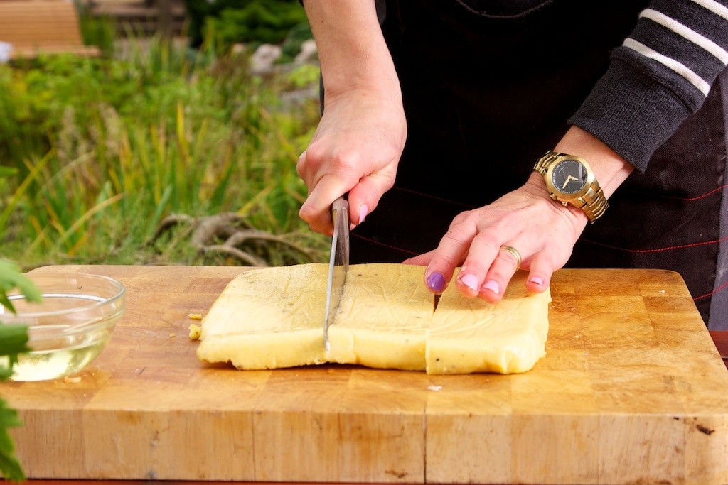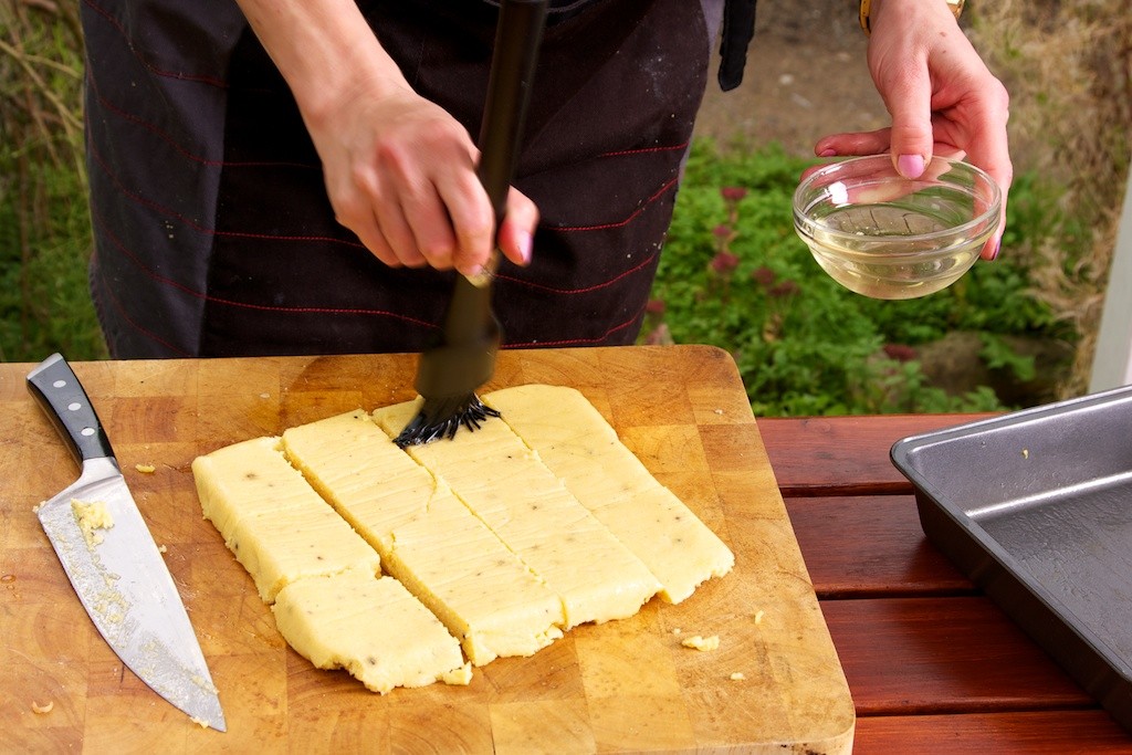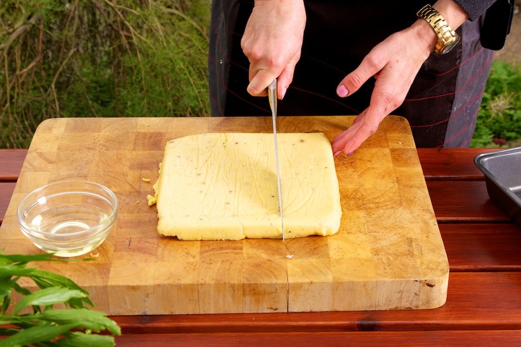 Postup prípravy: V ťažkom kastróle zmiešame kukuričnú múku so soľou, korením, a mliekom. Metličkou všetko šľaháme, kým nie je zmes hladká. Za stáleho miešania varíme cca 2 - 3 minúty. Hotová polenta by mala mať konzistenciu mäkšej zmrzliny. Hotovú polentu presunieme do nepriľnavého nízkeho pekáča, aby vznikla približne 1 cm vysoká placka. Prikryjeme potravinárskou fóliou a necháme vychladiť po dobu minimálne 4 hodín. Poriadne vychladenú polentu nakrájame na rovnomerné tvary, ktorých dĺžka a šírka by nemala presiahnuť 6 - 8 cm. Grilujeme na priame grilovanie, gril rozohrejeme na vysoký žiar. Grilovací rošt treba pred grilovaním potrieť olejom. Obe strany polenty potrieme pred vložením do grilu rozpusteným maslom alebo olivovým olejom. Otáčame a grilujeme po dobu cca 6 - 7 minút, kým nie je polenta krásne zlatistá. Polentu podávame horúcu.